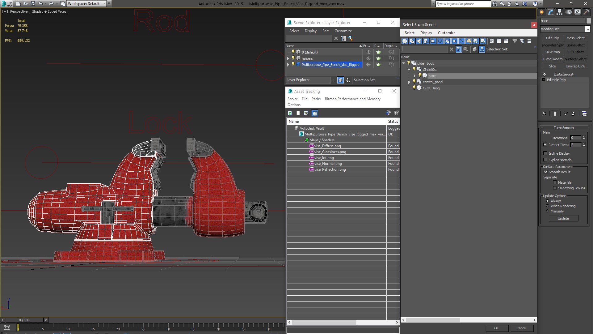 Multipurpose Pipe Bench Vise Rigged is fully rigged and is ready to be animated. You can easily position it the way you need or animate it the way your project requires using helpers in 3D Studio Max. See the turntable to get an idea of how rigging works.
