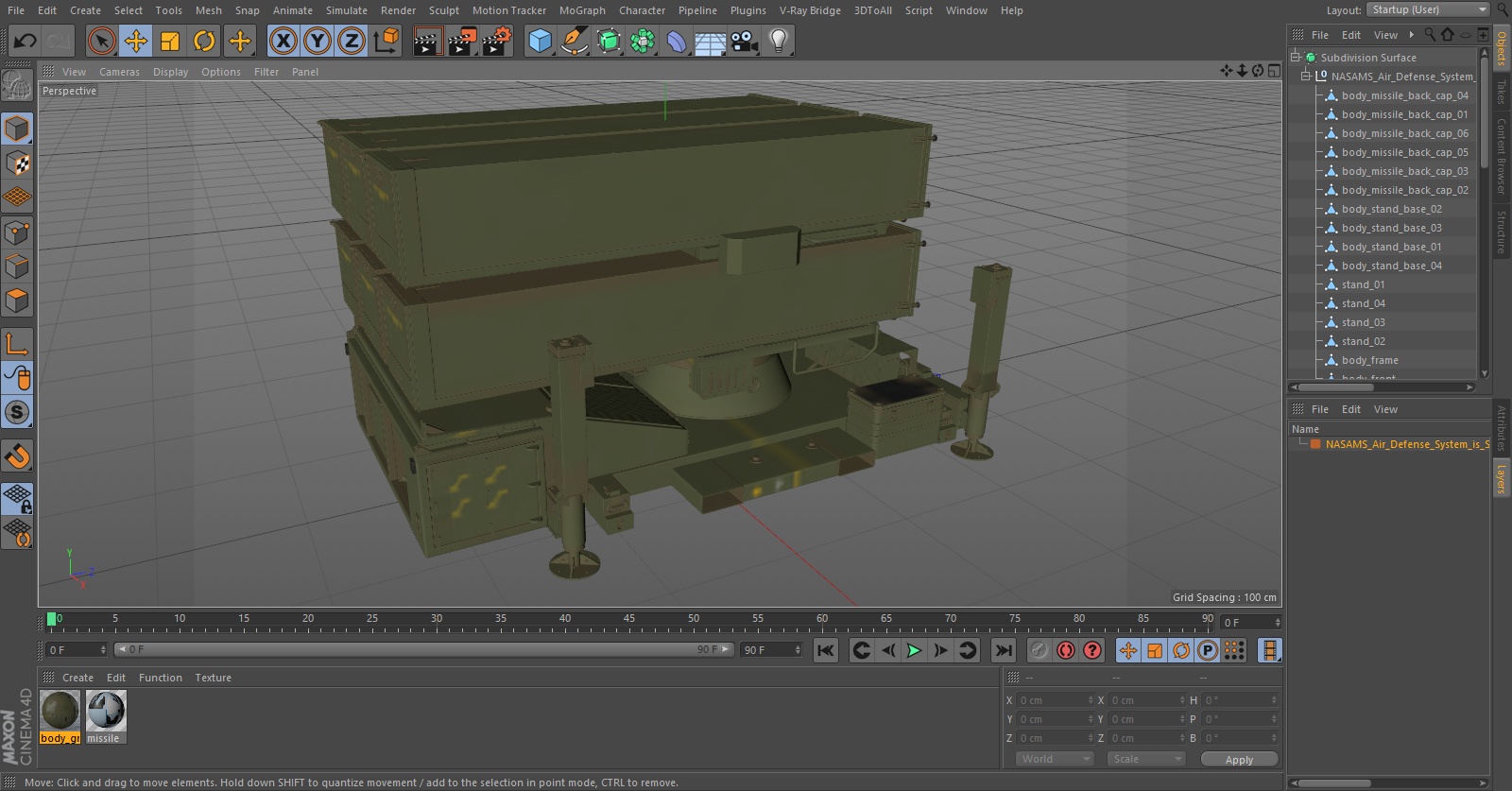 NASAMS Air Defense System is Small-Medium Range is a high quality, photo real 3d model that will enhance detail and realism to any of your rendering projects. The model has a fully textured, detailed design that allows for close-up renders, and was originally modeled in 3ds Max 2020 and rendered with V-Ray. Renders have no postprocessing!