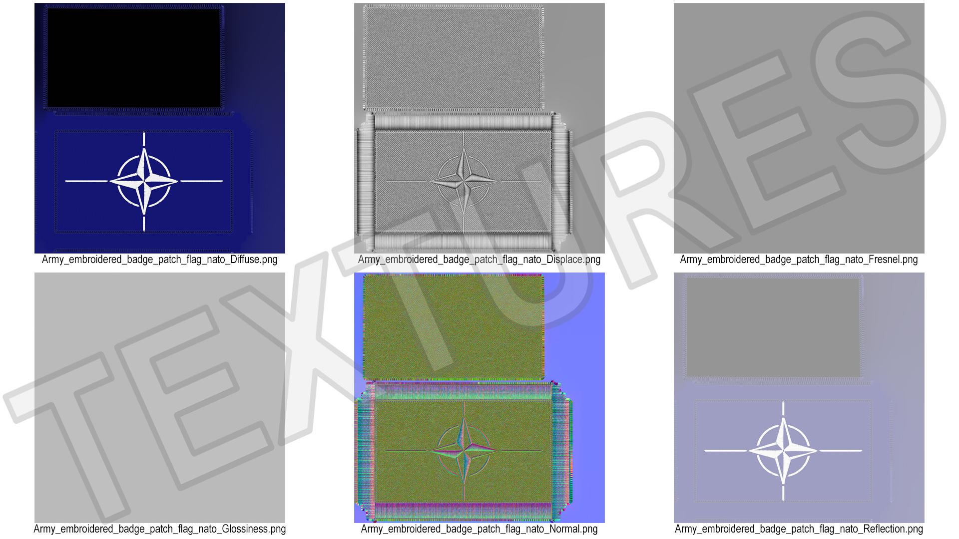 NATO Flag Patch is a high quality, photo real 3d model that will enhance detail and realism to any of your rendering projects. The model has a fully textured, detailed design that allows for close-up renders, and was originally modeled in 3ds Max 2020 and rendered with V-Ray. Renders have no postprocessing!