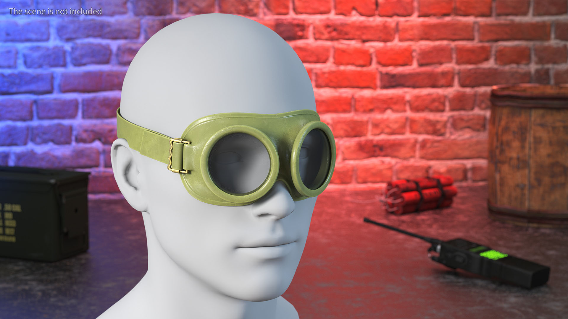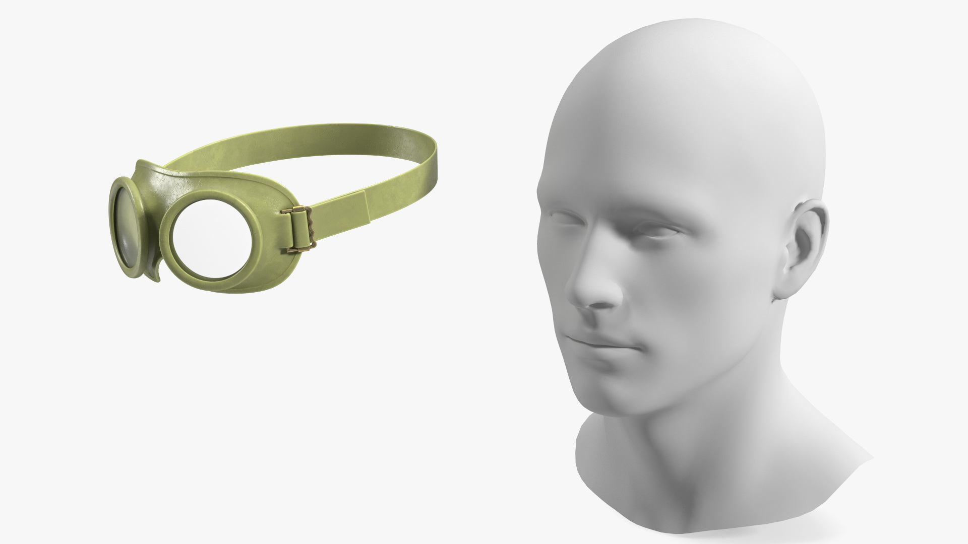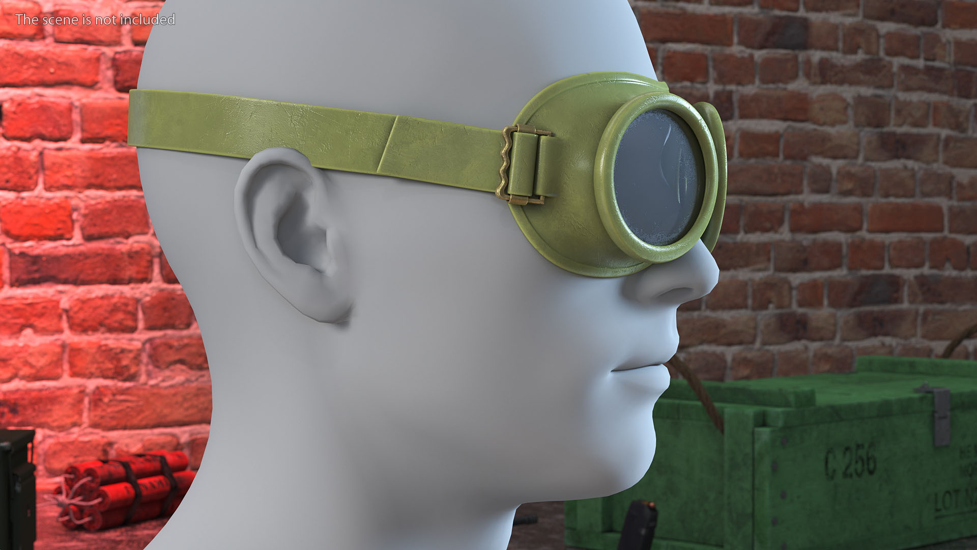NATO Protection Goggles Green on Mannequin Head is a 3d model of a specific type of protective eyewear designed to meet the standards set by the North Atlantic Treaty Organization (NATO) for military use.