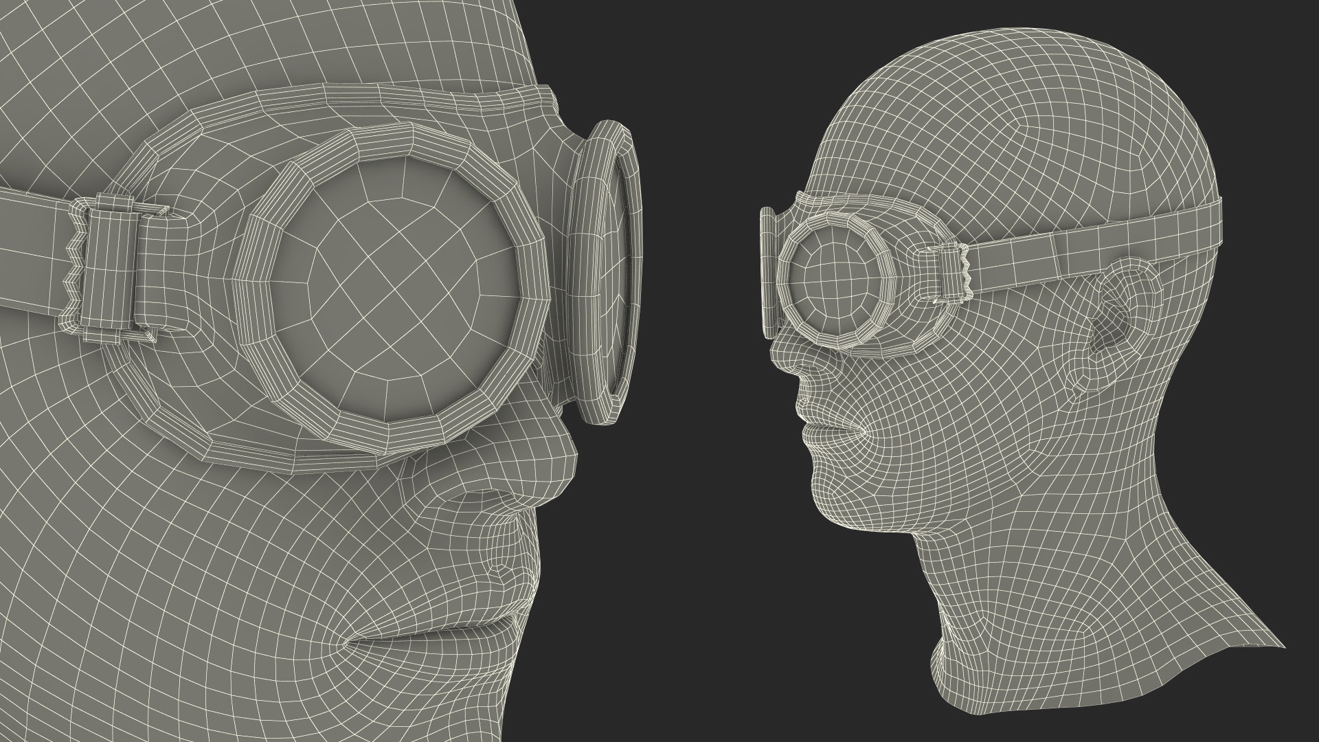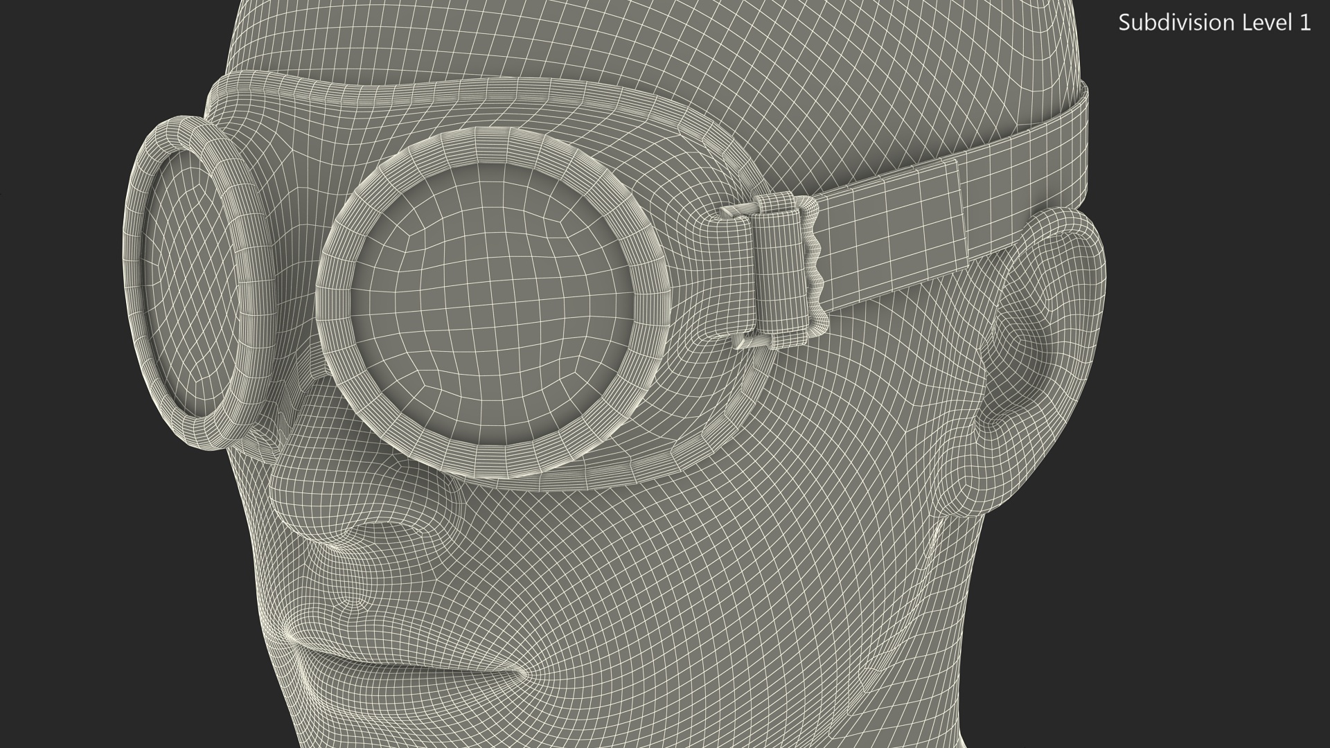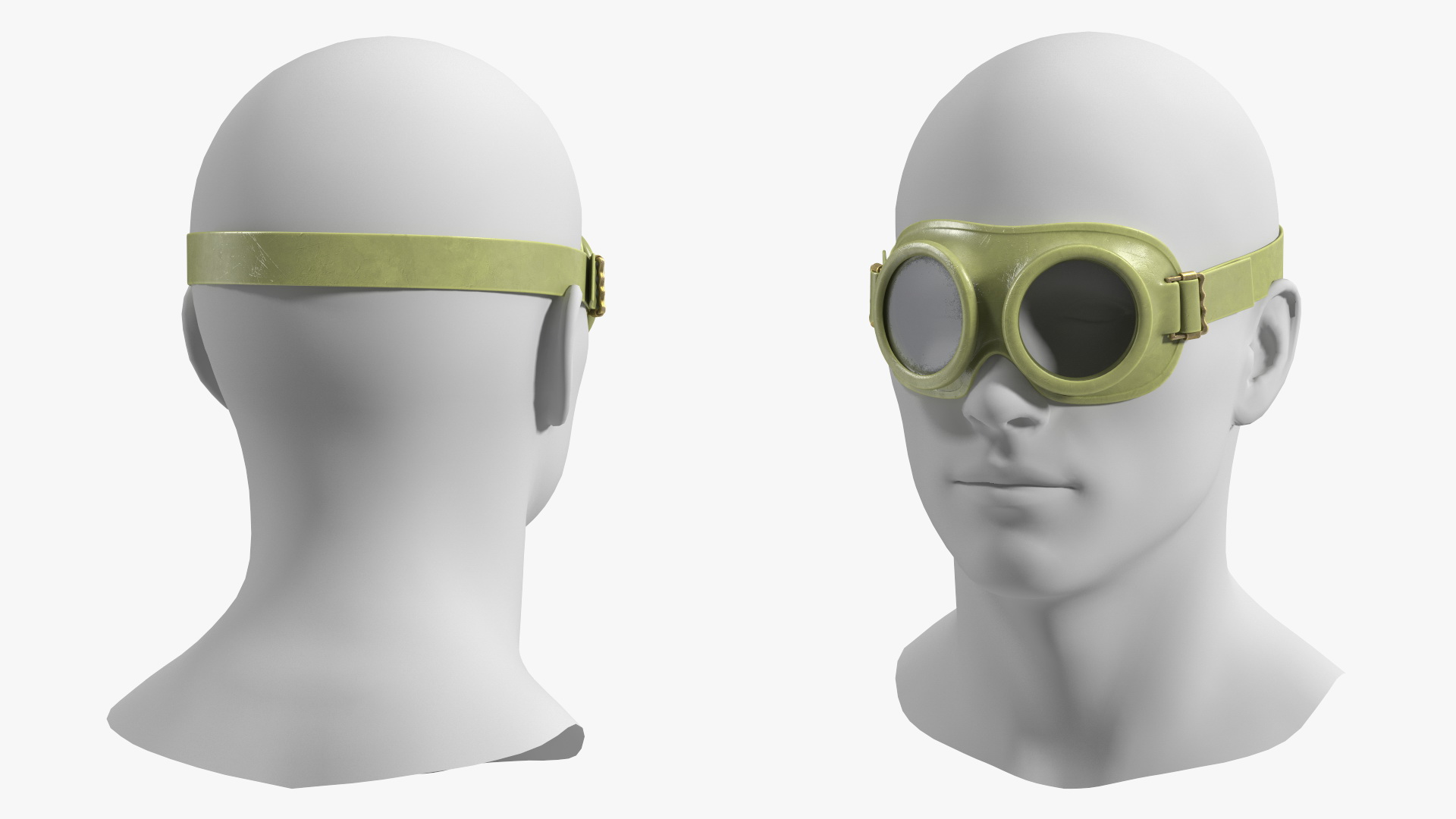 NATO Protection Goggles Green on Mannequin Head is a 3d model of a specific type of protective eyewear designed to meet the standards set by the North Atlantic Treaty Organization (NATO) for military use.