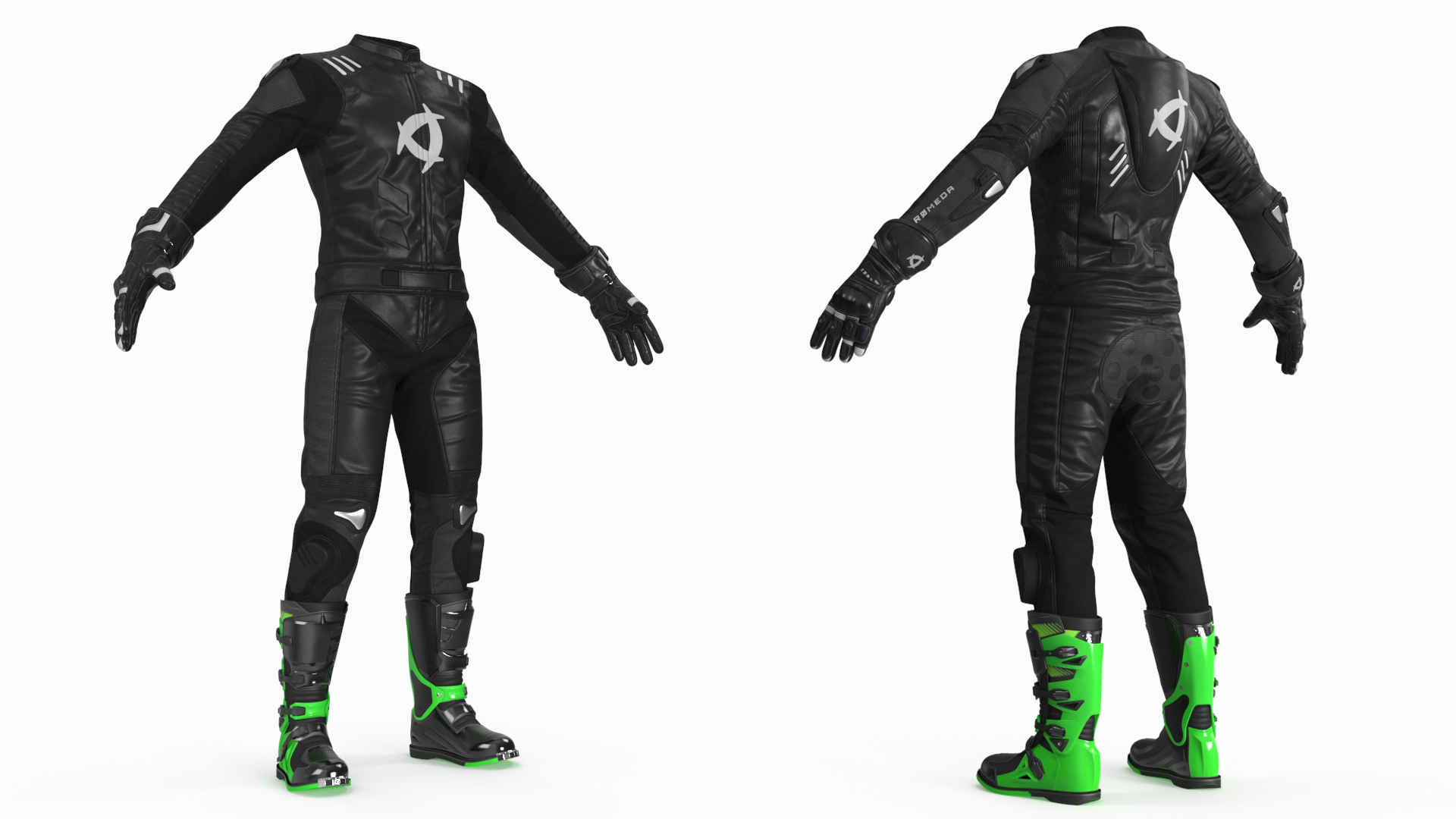 NEARX Suit Protective Riding Gear Black is a three-dimensional model of sport bike rider garment, often referred to as a racing suit, which is a specialized outfit designed for high-performance motorcycle racing.