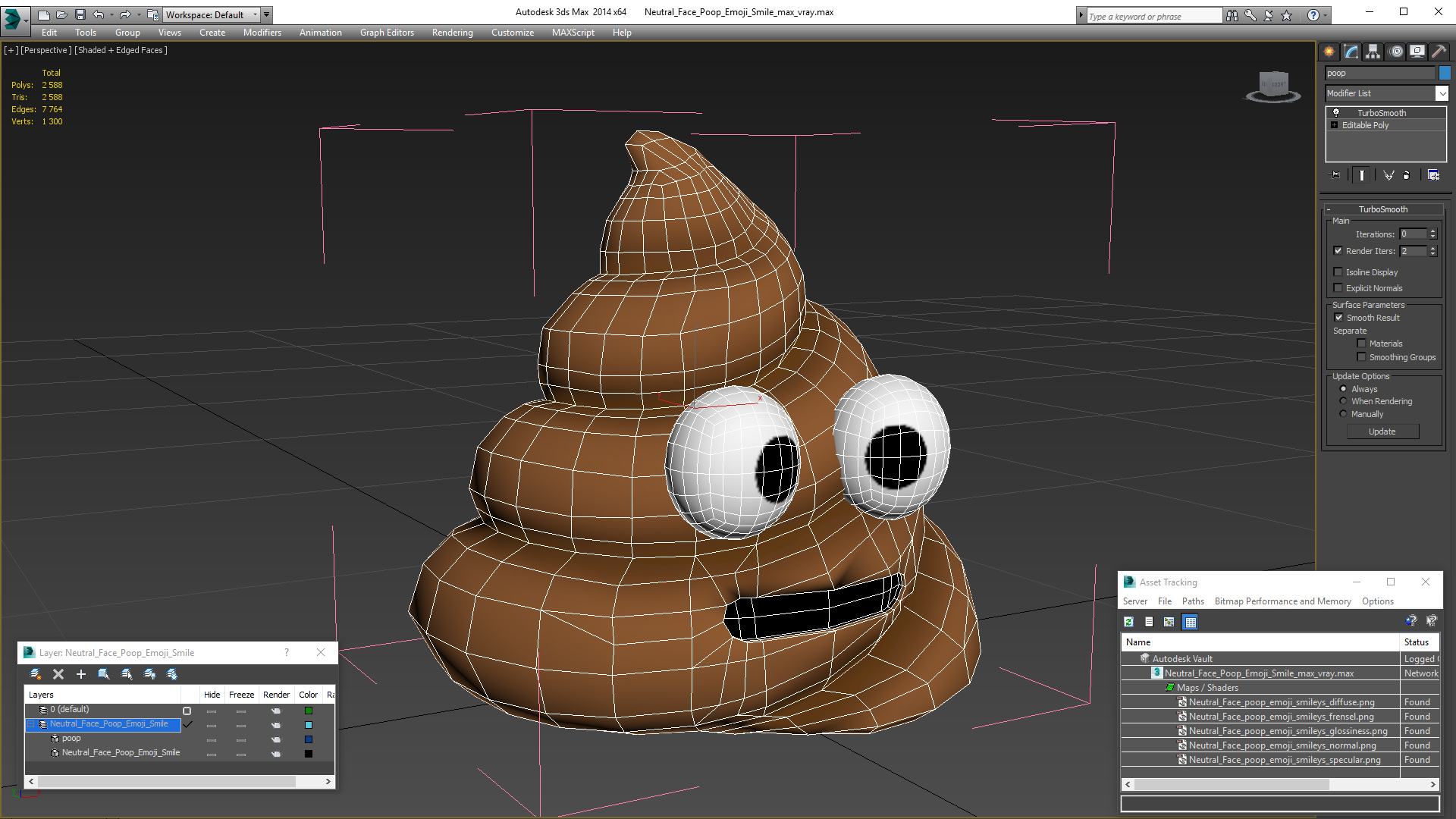 Neutral Face Poop Emoji Smile is a high quality, photo real 3d model that will enhance detail and realism to any of your rendering projects. The model has a fully textured, detailed design that allows for close-up renders, and was originally modeled in 3ds Max 2020 and rendered with V-Ray. Renders have no postprocessing!