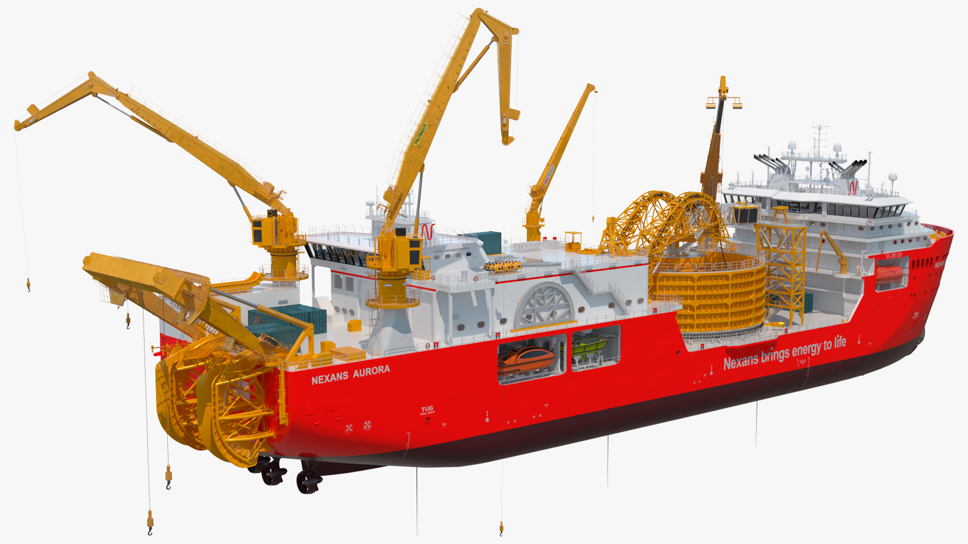 Nexans Aurora Cable Layer Vessel Rigged is a 3d model of state-of-the-art cable laying vessel designed for the installation of subsea power cables and umbilicals.