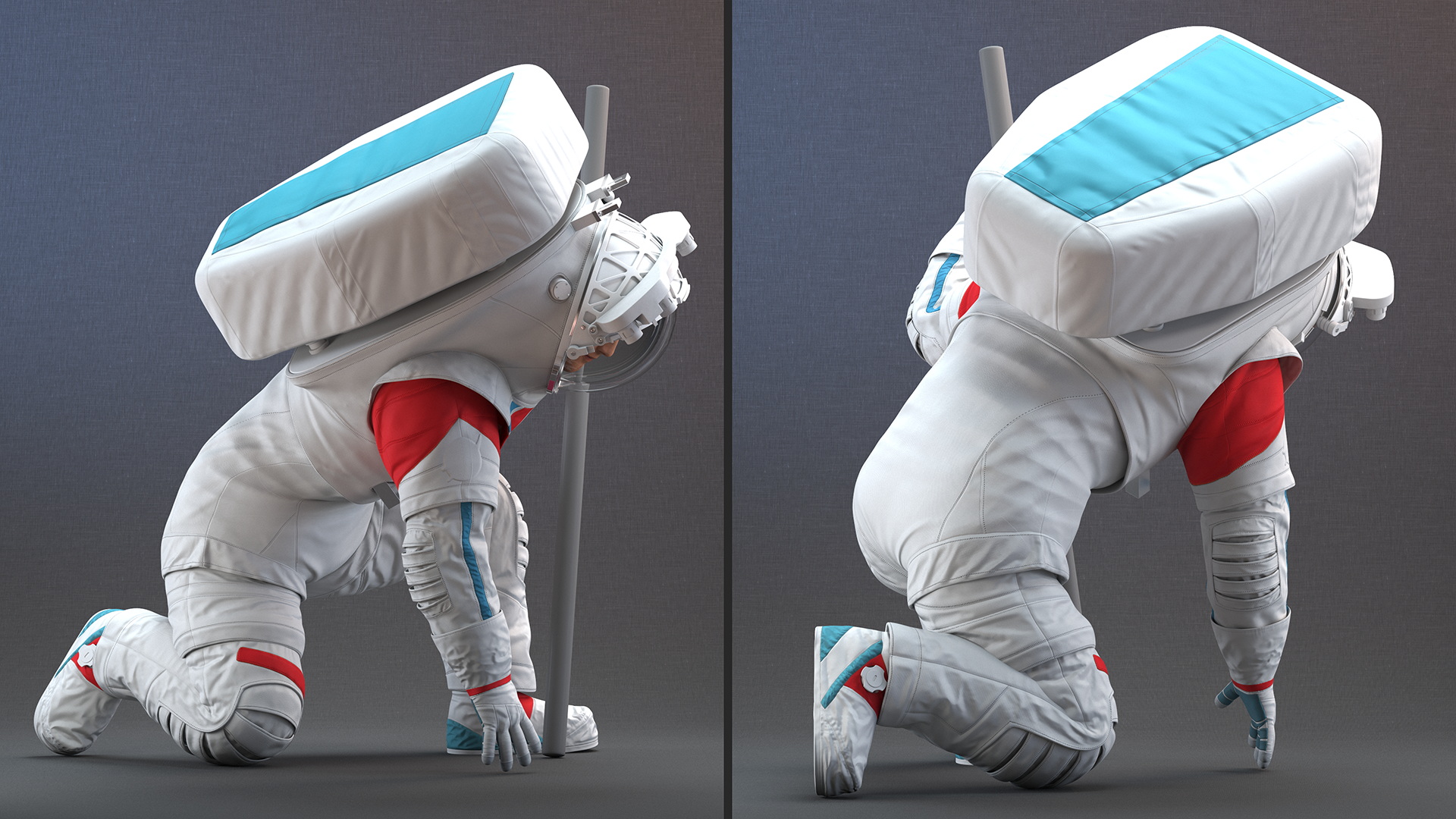 Next Gen Spacesuit on Astronaut Crawling Pose Fur is a 3D model of brave astronaut character which is male person which wear the specialized spacesuit type equipment (garment for astronauts).