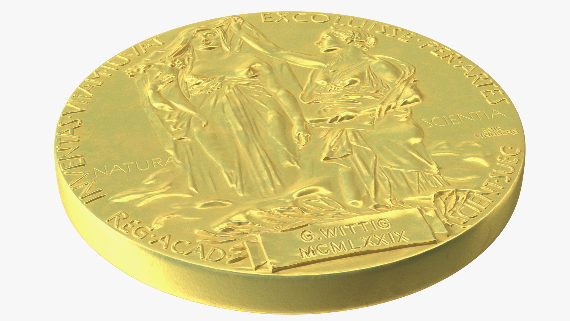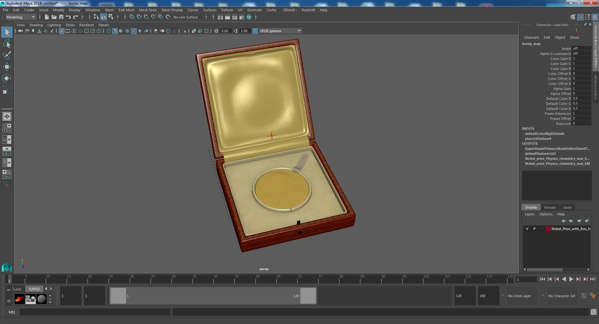 Nobel Prize with Box for Physics and Chemistry is a three-dimensional model of a famous gold medal prize which awarded to a previous year's outstanding person.