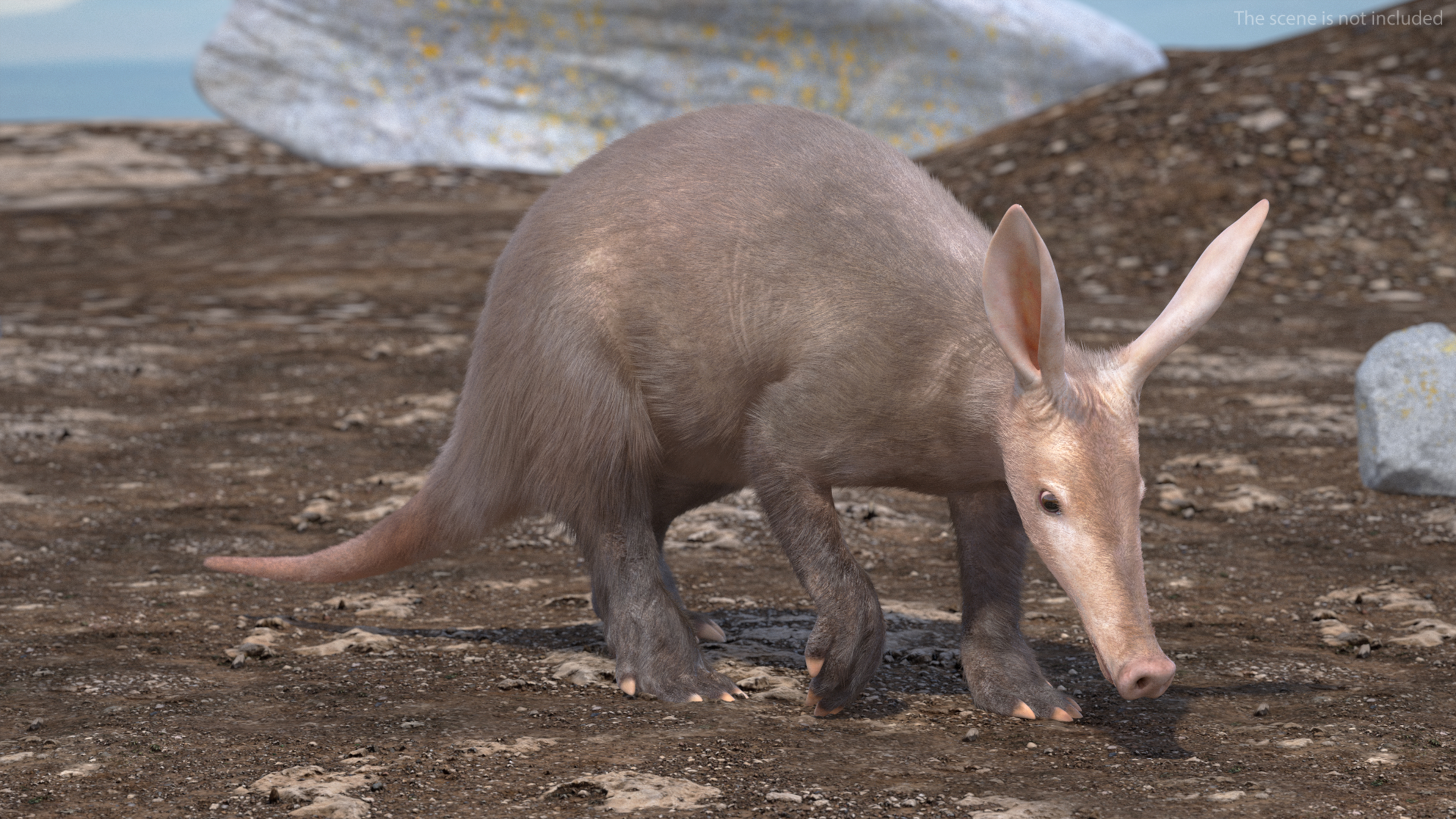 Nocturnal Mammal Aardvark Walking Pose Fur is a three-dimensional model of aardvark (Orycteropus afer, African ant bear, anteater, or Cape anteater), which is an African, medium-sized, burrowing, nocturnal, mammal animal with a long snout, similar to that of a pig, which is used to sniff out food.