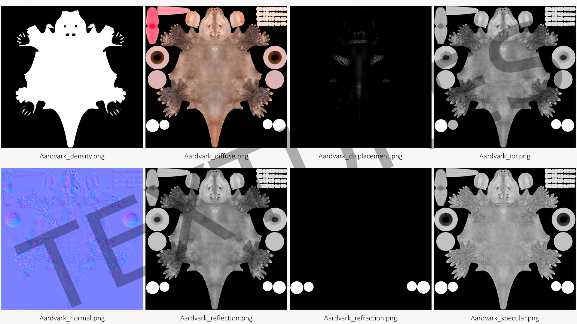 Nocturnal Mammal Aardvark Walking Pose Fur is a high quality, photo real 3d model that will enhance detail and realism to any of your rendering projects. The model has a fully textured, detailed design that allows for close-up renders, and was originally modeled in 3ds Max 2020 and rendered with V-Ray. Renders have no postprocessing!