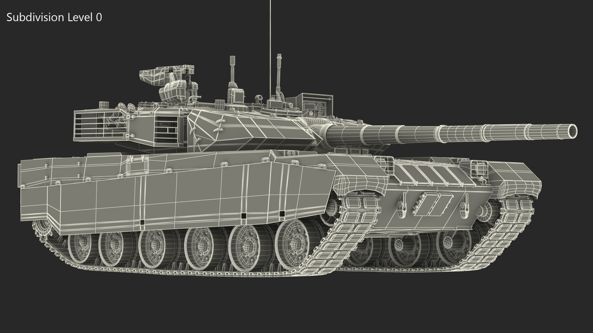 - Model is fully textured with all materials applied.