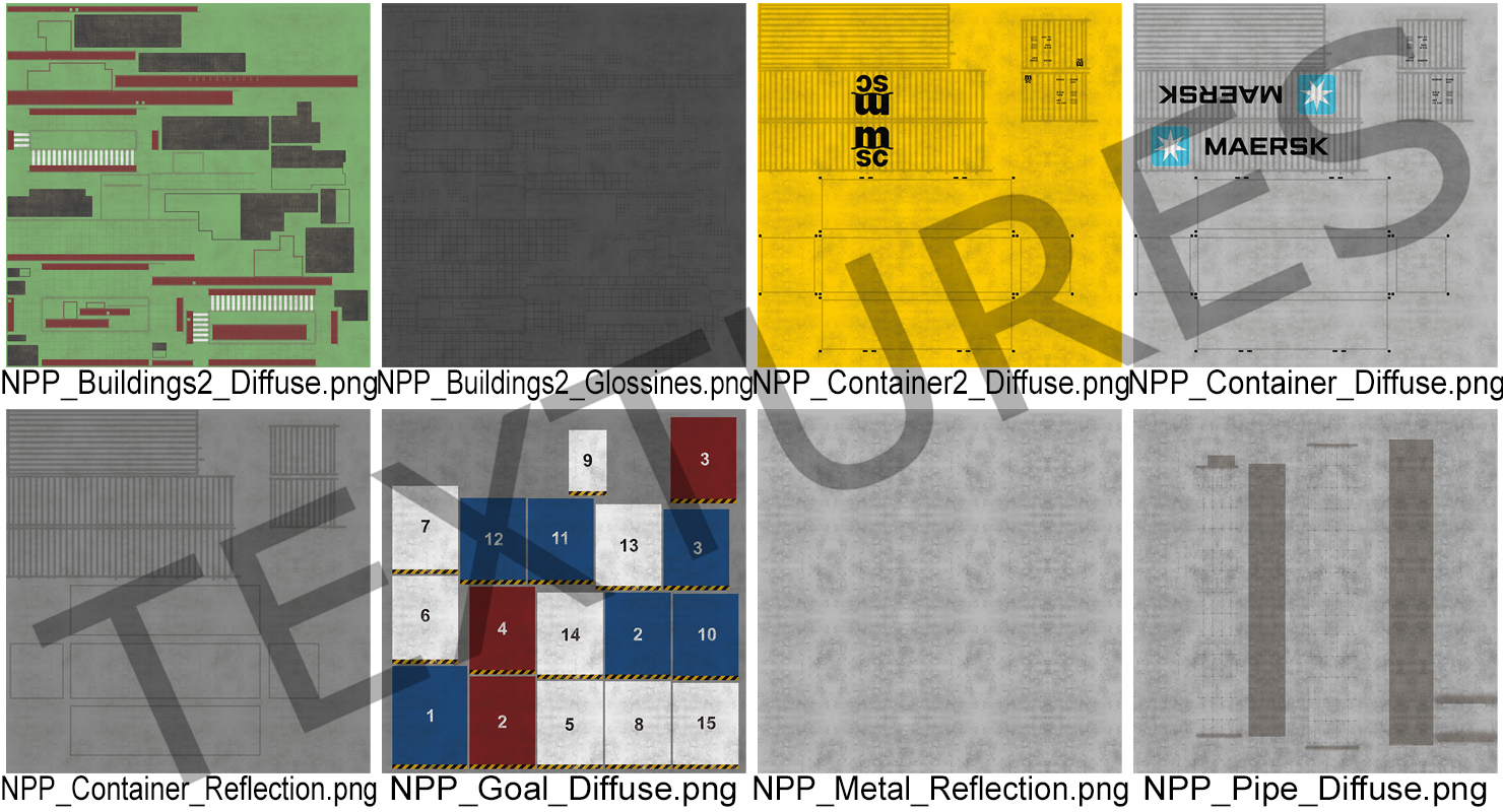 All textures and materials are included and mapped. (All colors can be easily modified.)