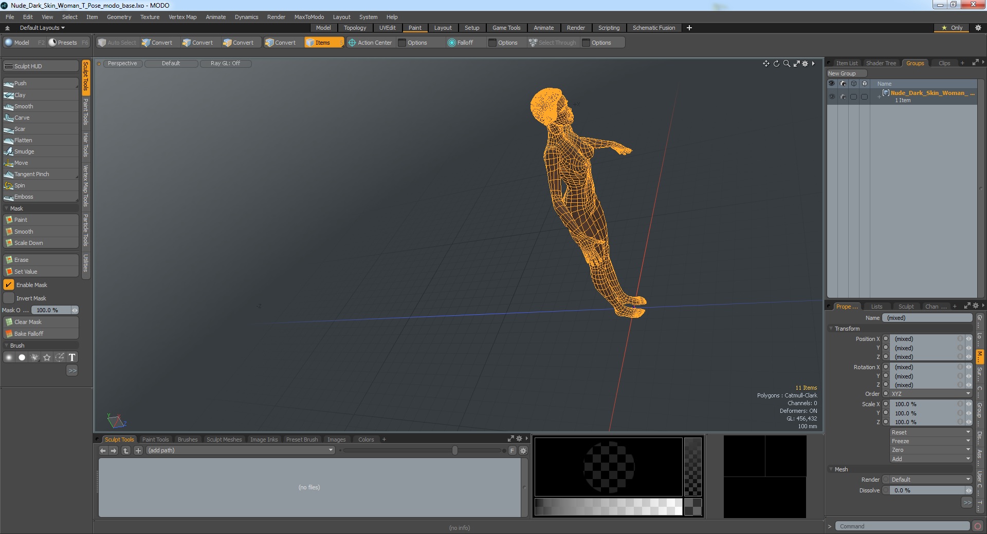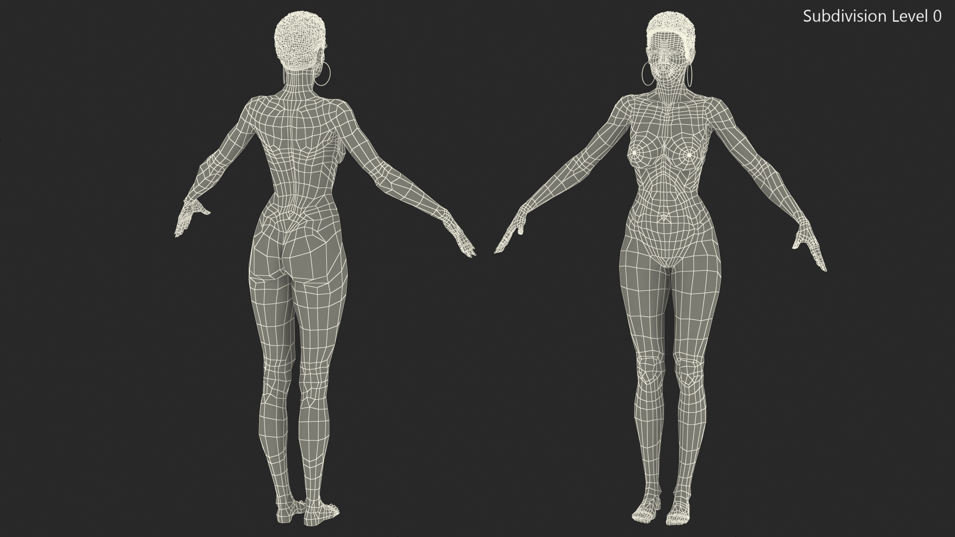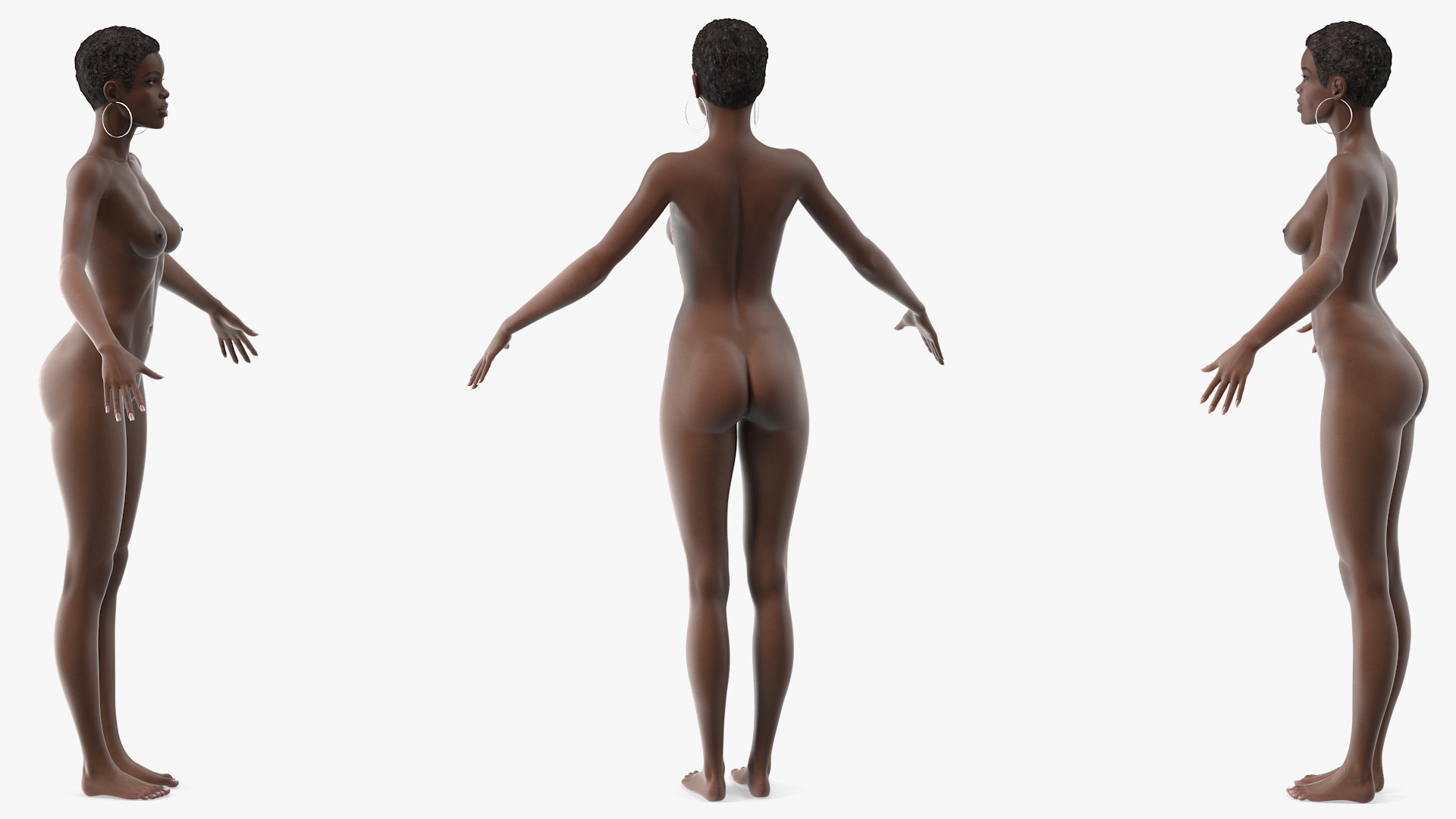 Nude Dark Skin Woman T Pose female elegant attractive lovely undressed person model.
