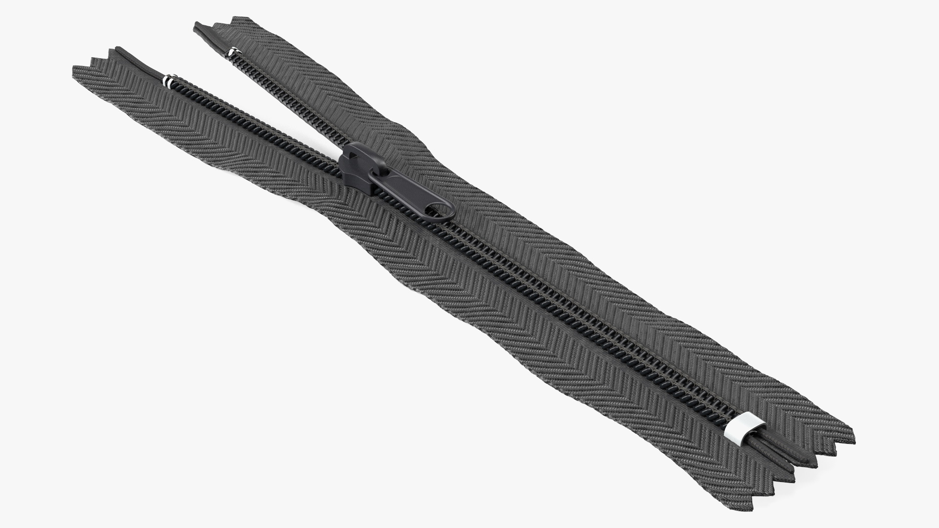 Nylon Coil Closed End Zipper Black is a three-dimensional model of a fastening component for handbags, clothes, leather equipment, ammunition or backpacks.