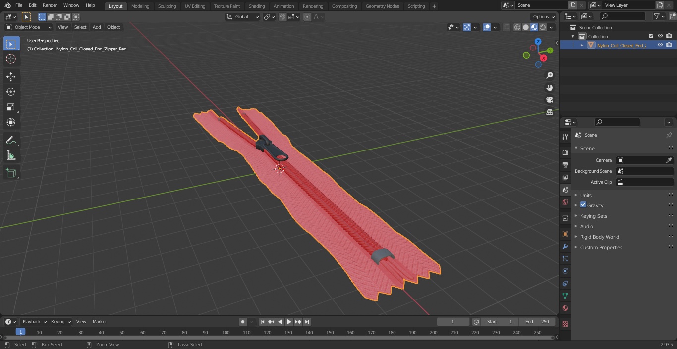 Nylon Coil Closed End Zipper Red is a high quality, photo real 3d model that will enhance detail and realism to any of your rendering projects. The model has a fully textured, detailed design that allows for close-up renders, and was originally modeled in 3ds Max 2020 and rendered with V-Ray. Renders have no postprocessing!