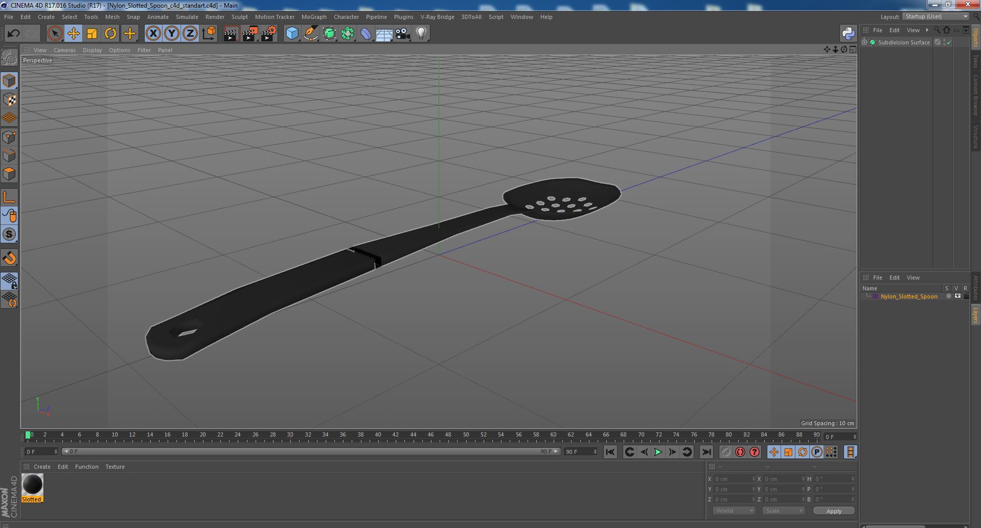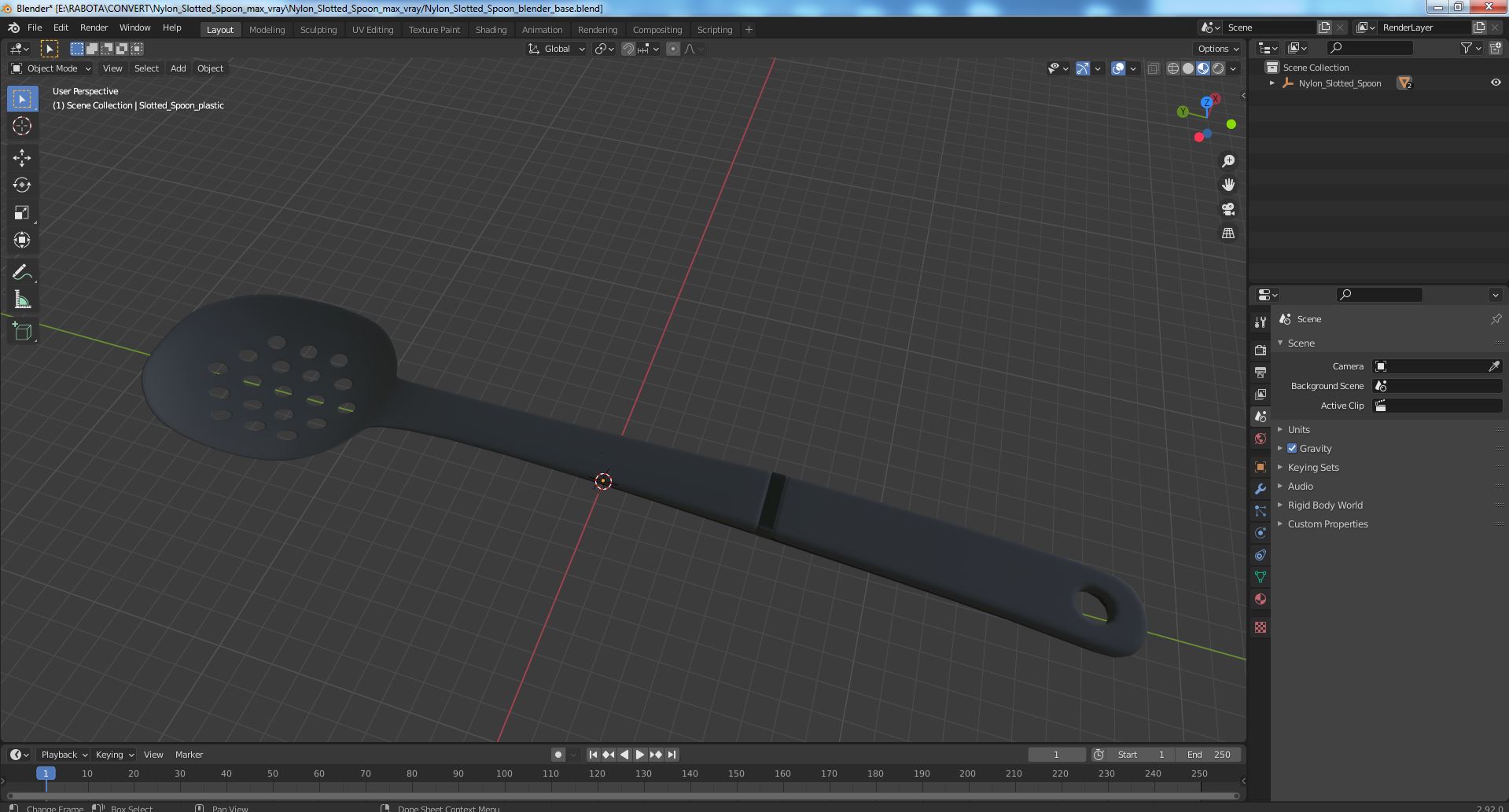 Nylon Slotted Spoon is a high quality, photo real 3d model that will enhance detail and realism to any of your rendering projects. The model has a fully textured, detailed design that allows for close-up renders, and was originally modeled in 3ds Max 2020 and rendered with V-Ray. Renders have no postprocessing!