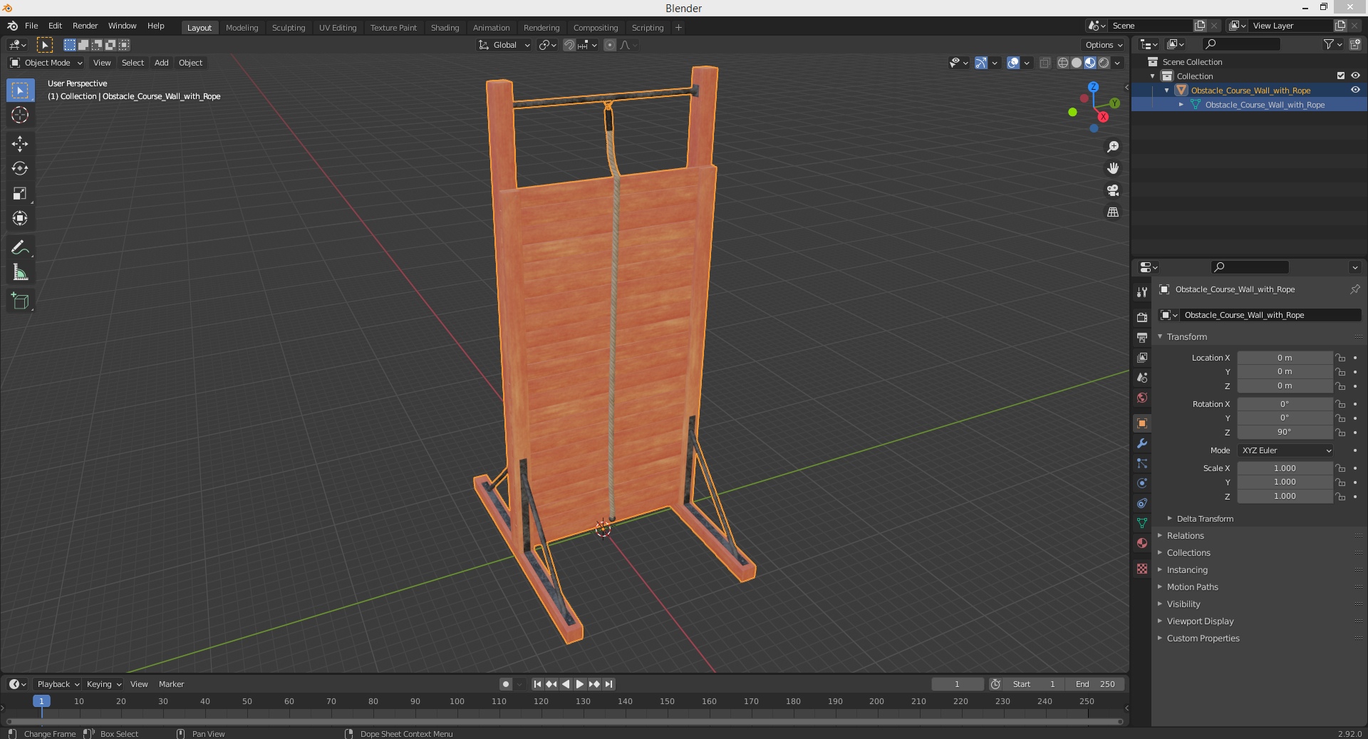 Obstacle Course Wall with Rope is a high quality, photo real 3d model that will enhance detail and realism to any of your rendering projects. The model has a fully textured, detailed design that allows for close-up renders, and was originally modeled in 3ds Max 2020 and rendered with V-Ray. Renders have no postprocessing!
