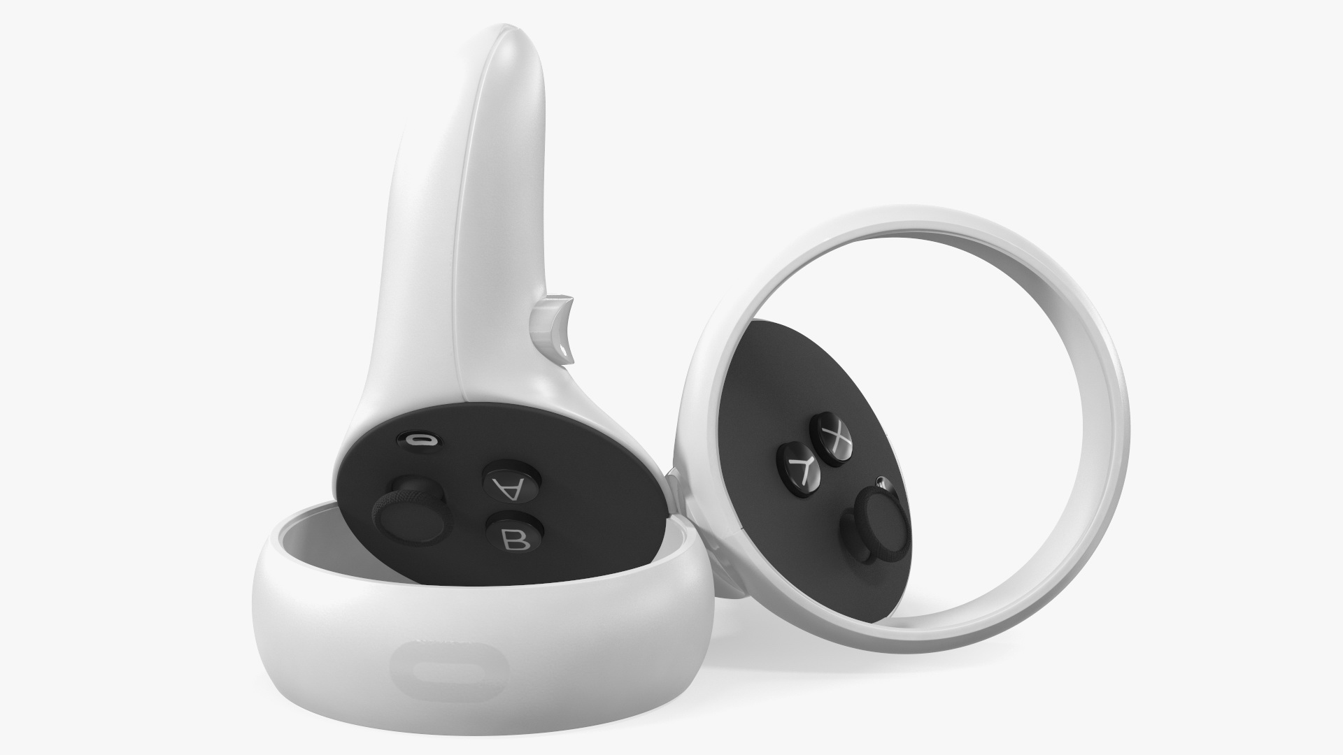 The Oculus Touch is a modern computer electronics system hardware with a pair of analog stick handheld units, set of infrared LEDs, detecting finger gestures feature, two triggers and buttons, used for grabbing and shooting.