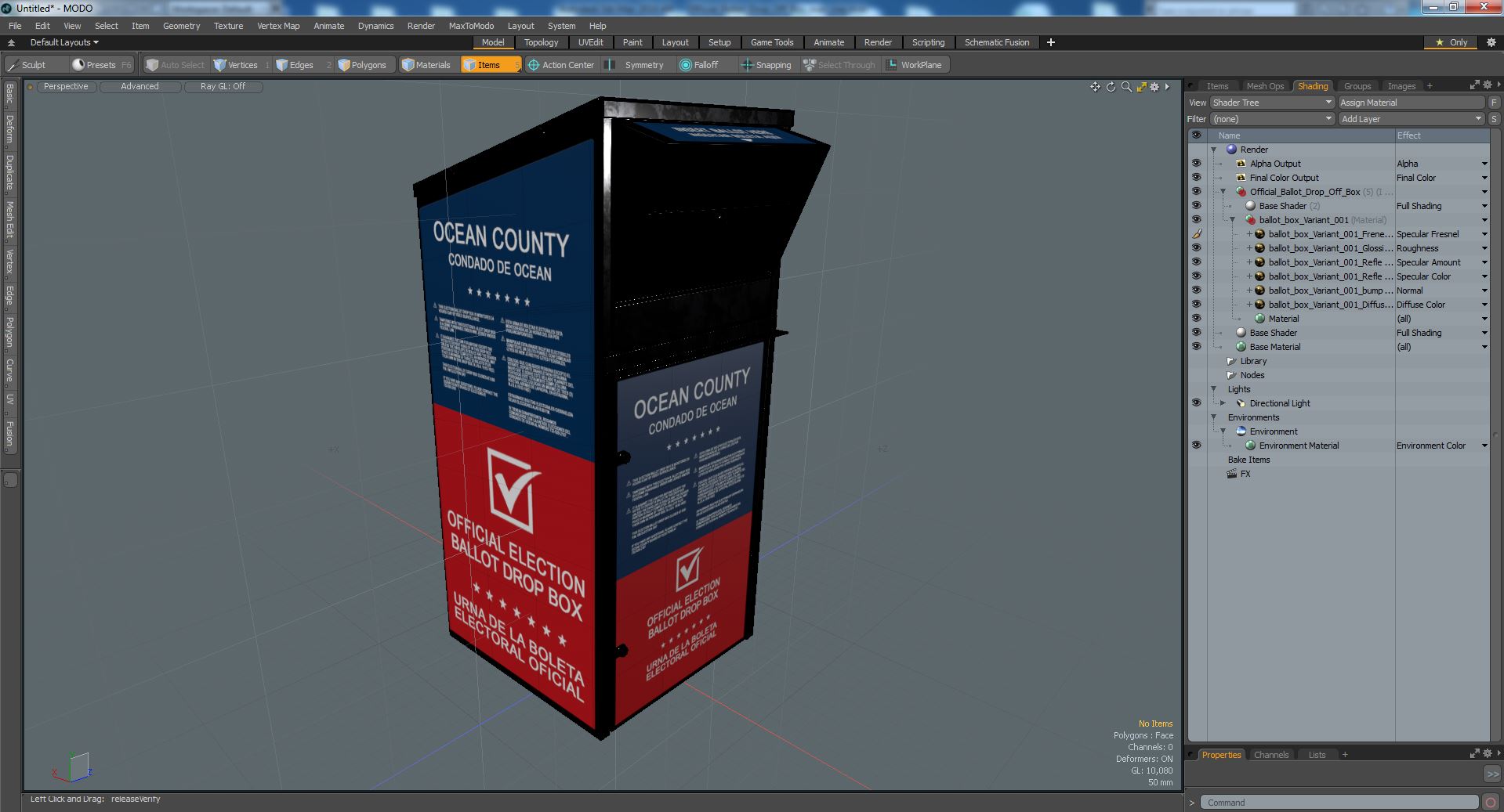 Official Ballot Drop Off Box is a high quality, photo real 3d model that will enhance detail and realism to any of your rendering projects. The model has a fully textured, detailed design that allows for close-up renders, and was originally modeled in 3ds Max 2020 and rendered with V-Ray. Renders have no postprocessing!