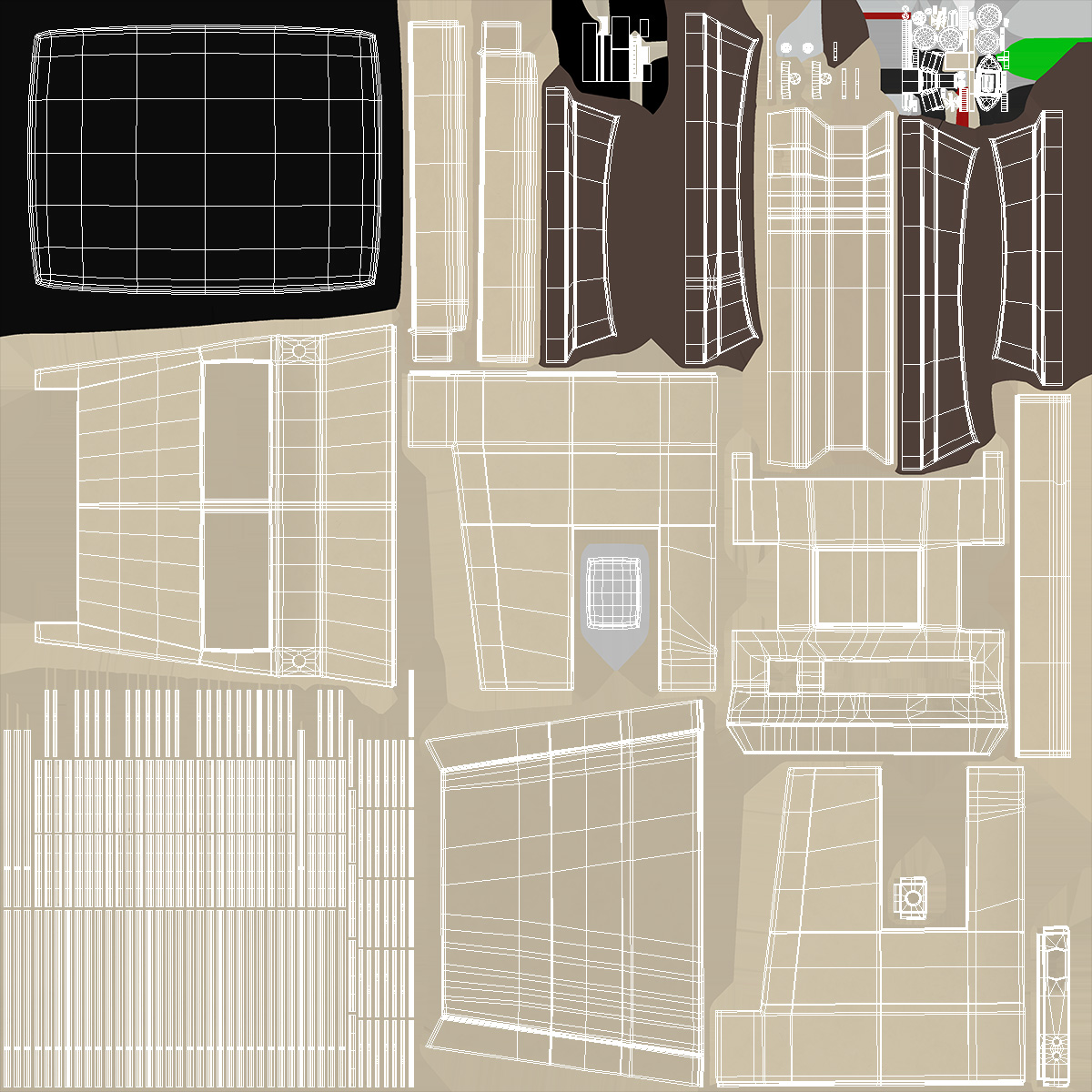 All textures and materials are included and mapped. (All colors can be easily modified.)