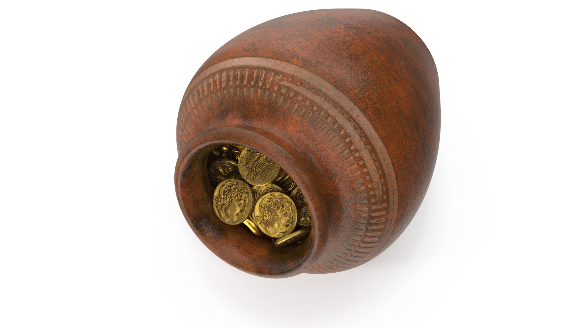 Old Clay Pot Full of Gold Coins is a 3d model of pot containing a collection of antique coins.