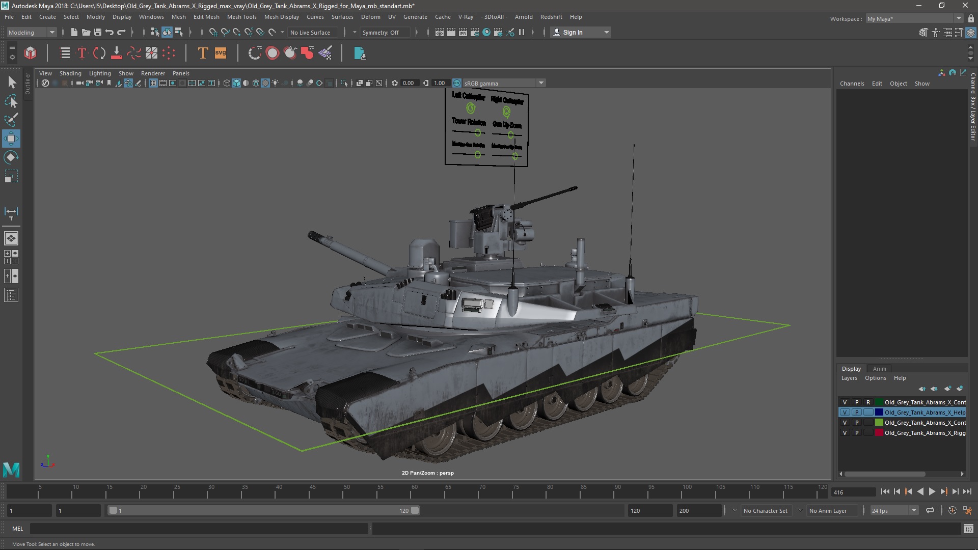 Old Grey Tank Abrams X Rigged for Maya is fully rigged and is ready to be animated in Maya. You can easily position it the way you need or animate it the way your project requires. See the screenshots to get an idea of how rigging works. The pose of the model on the render images is an example and can be recreated using rig, it is not initially included into the product.