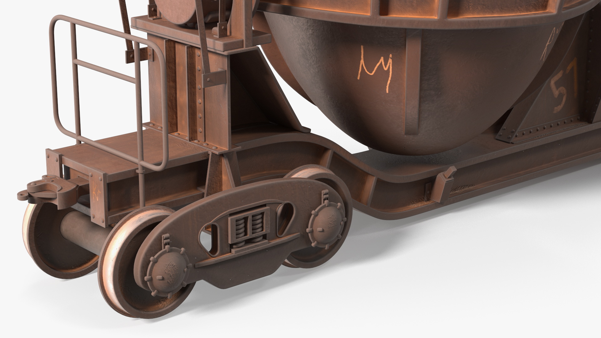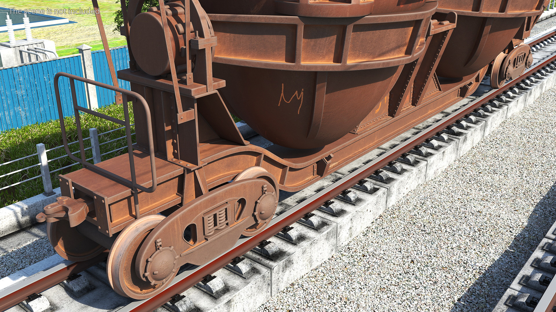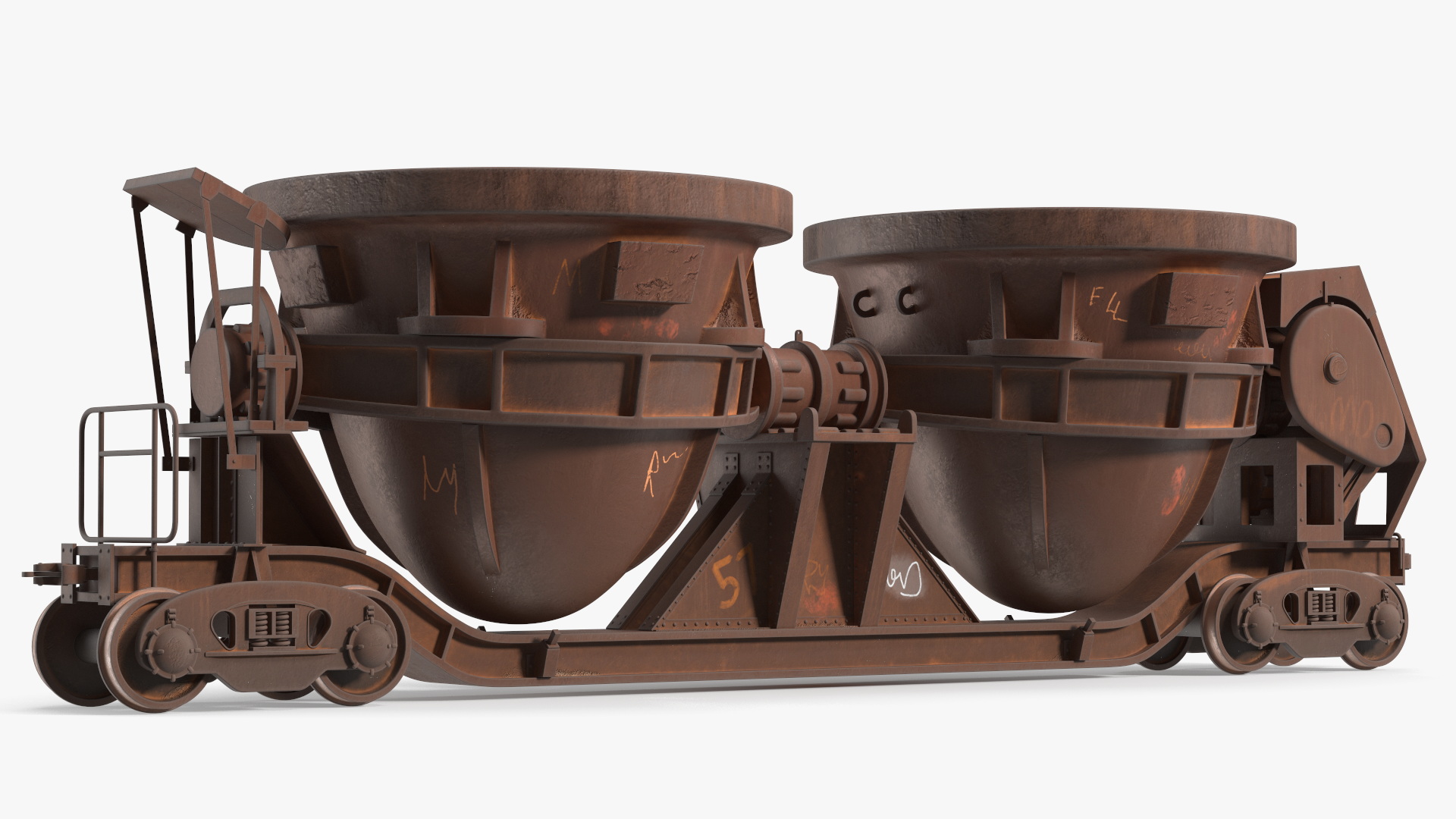 Old Rusted Double Pot Slag Car is a 3d model of specialized vehicle designed for the transportation and handling of slag pots in steel mills or other metal processing facilities.