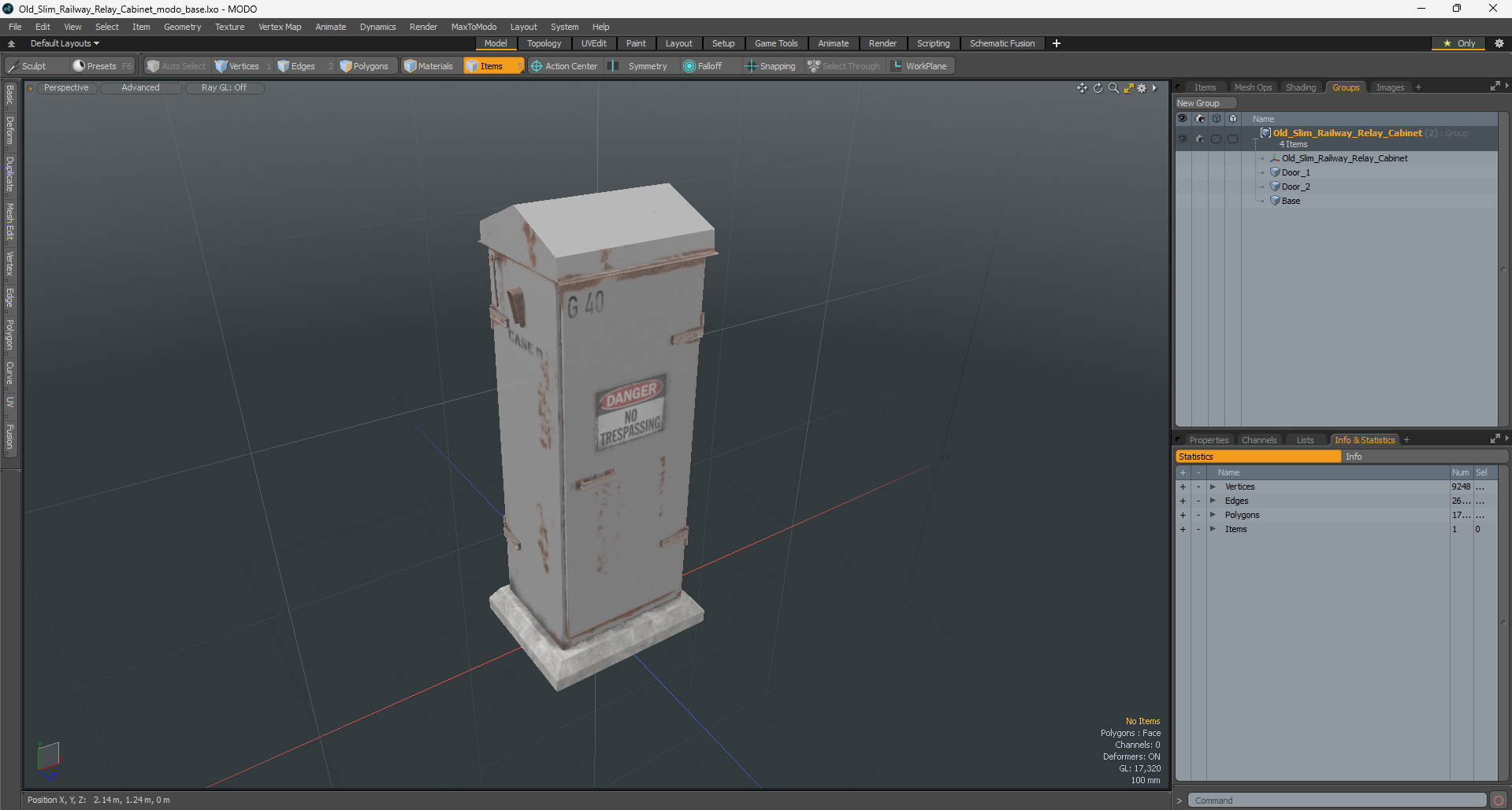 Old Slim Railway Relay Cabinet is a high quality, photo real 3d model that will enhance detail and realism to any of your rendering projects. The model has a fully textured, detailed design that allows for close-up renders, and was originally modeled in 3ds Max 2020 and rendered with V-Ray. Renders have no postprocessing!