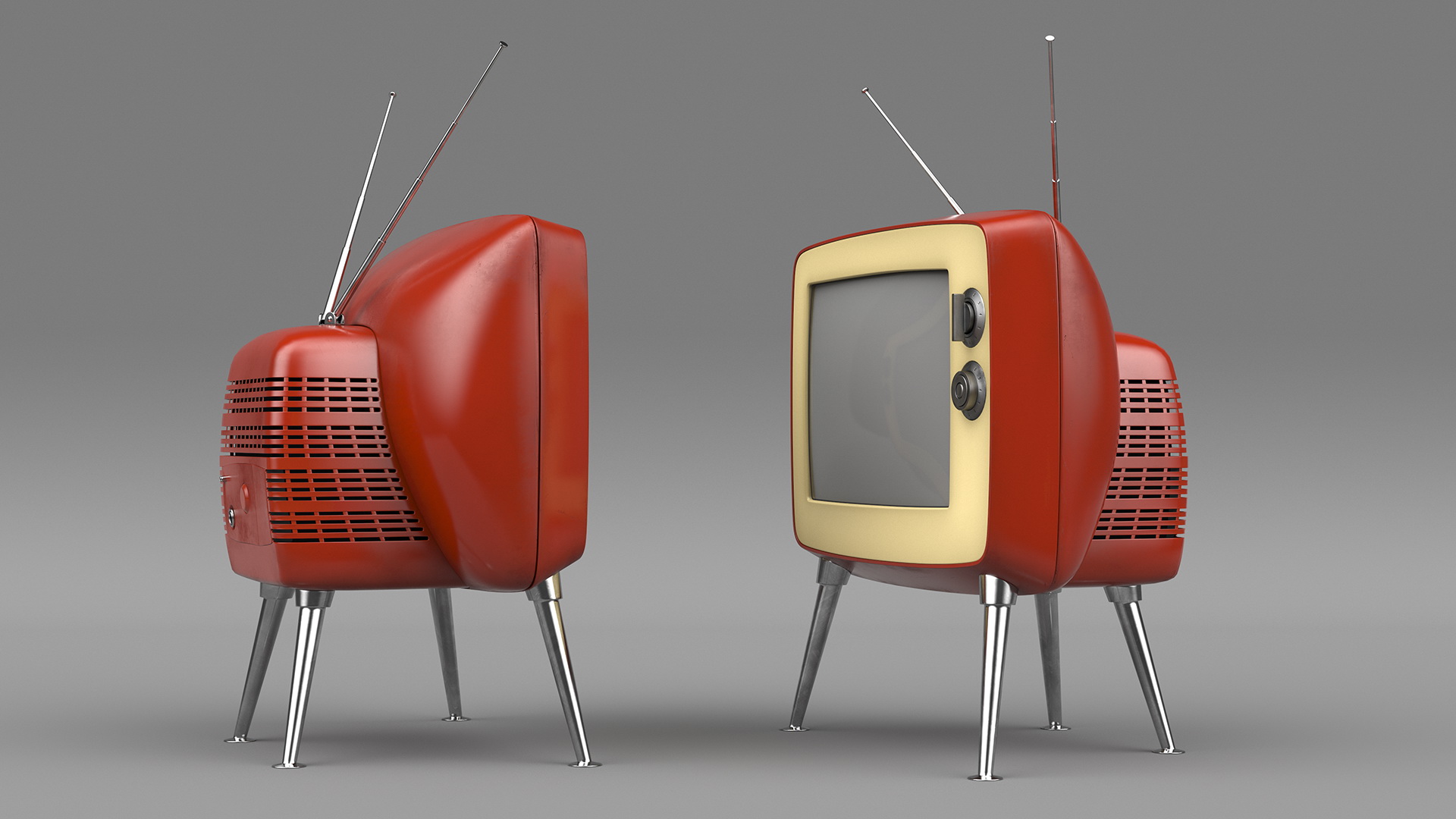Old Tv On Legs is a high quality, photo real 3d model that will enhance detail and realism to any of your rendering projects. The model has a fully textured, detailed design that allows for close-up renders, and was originally modeled in 3ds Max 2020 and rendered with V-Ray. Renders have no postprocessing!