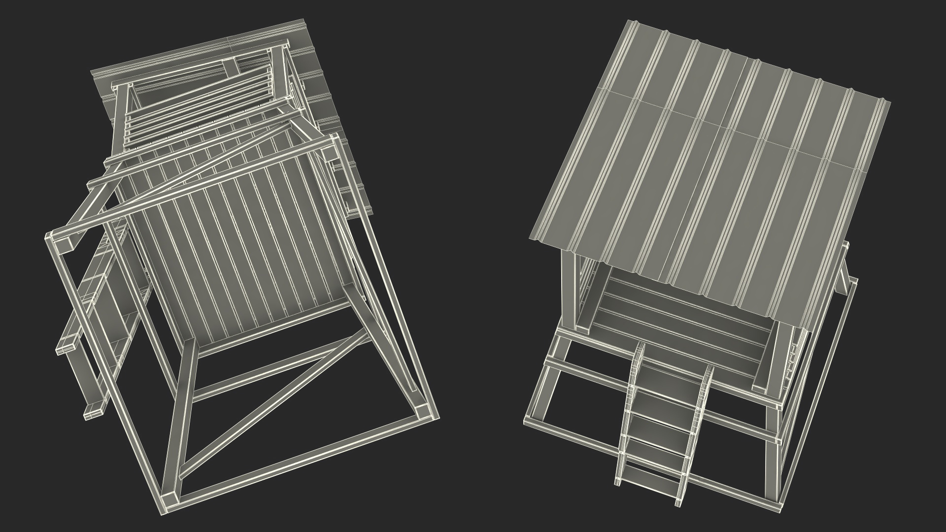 Old Wooden Lifeguard Station White is a three-dimensional model of aged beach lifeguard tower (beach lifeguard stand, lifeguard bungalow, lifeguard cabin, or lifeguard station) which is a worn out beach water safety construction which used at water recreational beaches, public swimming pools, etc..