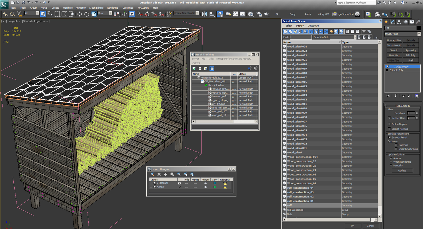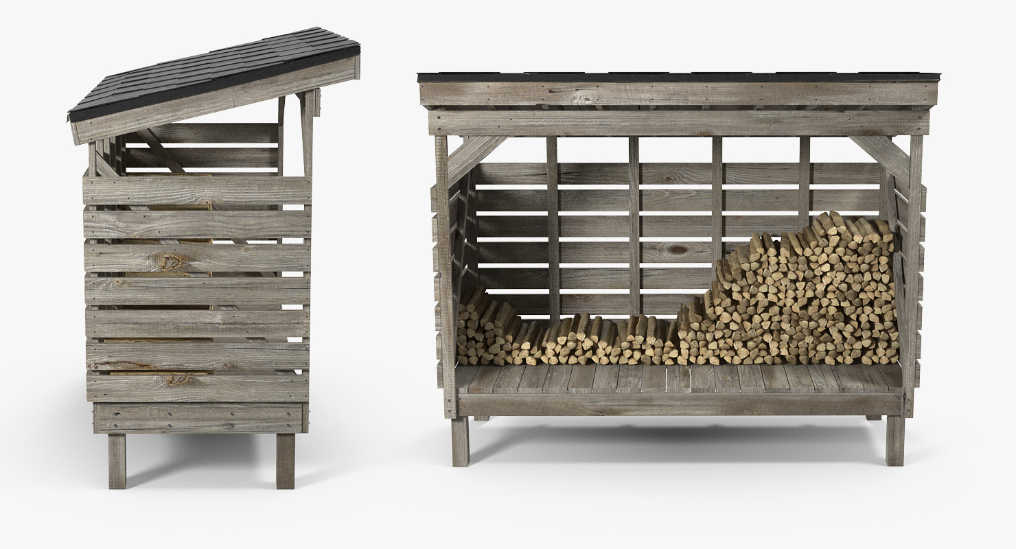 Old Woodshed with Stack of Firewood is a high quality, photo real 3d model that will enhance detail and realism to any of your rendering projects. The model has a fully textured, detailed design that allows for close-up renders, and was originally modeled in 3ds Max 2020 and rendered with V-Ray. Renders have no postprocessing!