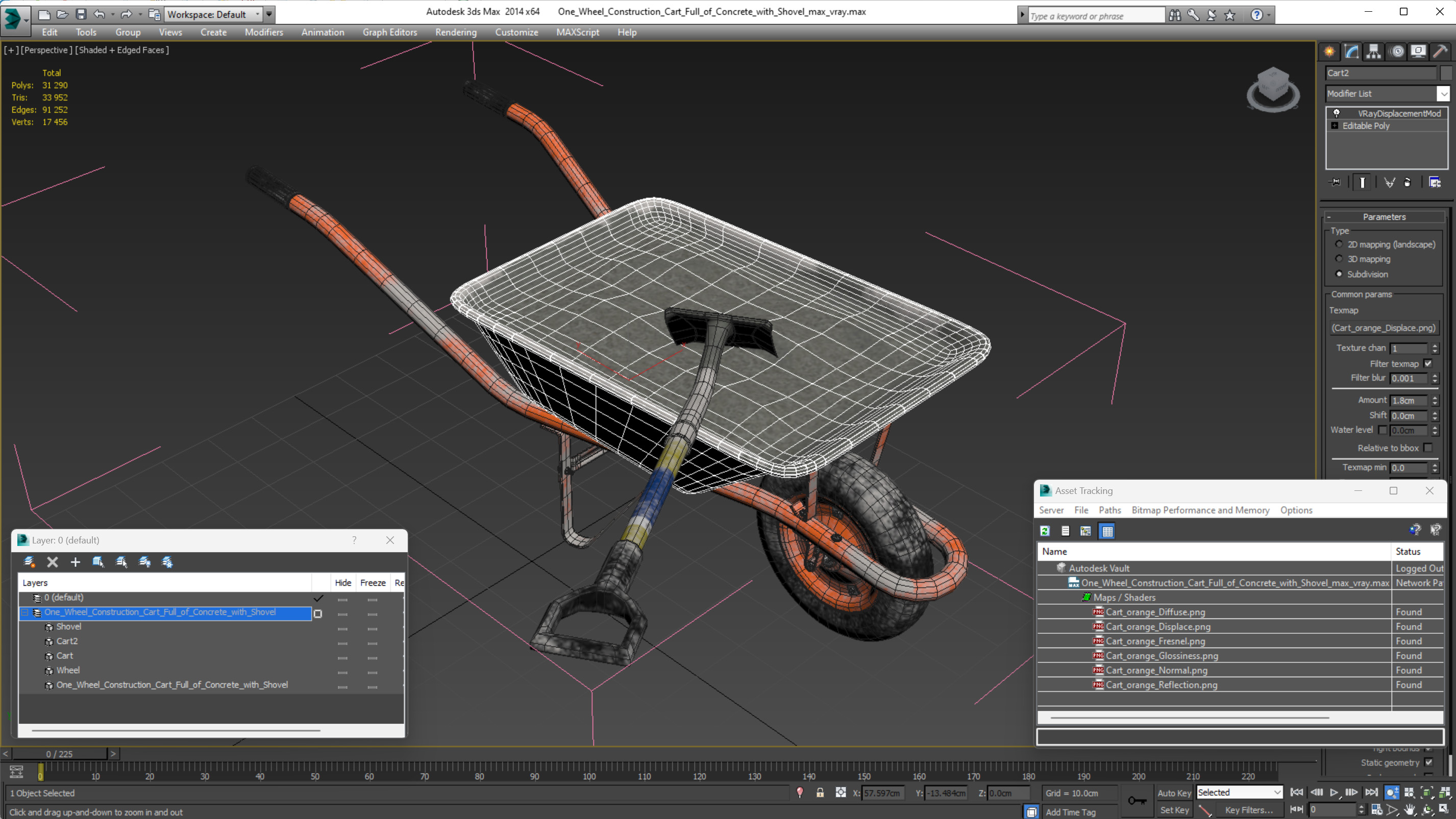 One Wheel Construction Cart Full of Concrete with Shovel is a high quality, photo real 3d model that will enhance detail and realism to any of your rendering projects. The model has a fully textured, detailed design that allows for close-up renders, and was originally modeled in 3ds Max 2020 and rendered with V-Ray. Renders have no postprocessing!
