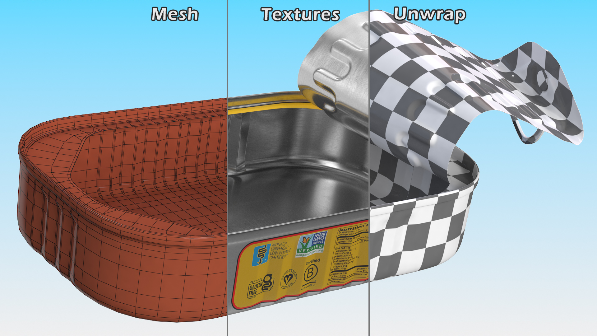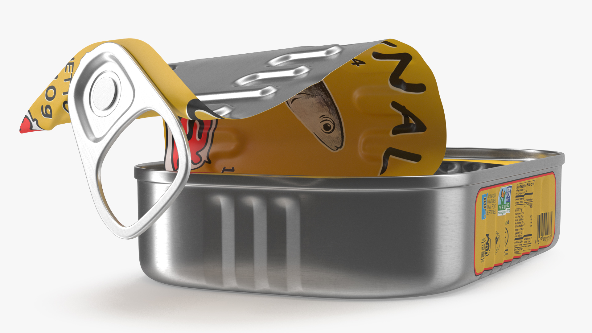 Open Empty Rectangular Sardine Can is a high quality, photo real 3d model that will enhance detail and realism to any of your rendering projects. The model has a fully textured, detailed design that allows for close-up renders, and was originally modeled in 3ds Max 2020 and rendered with V-Ray. Renders have no postprocessing!