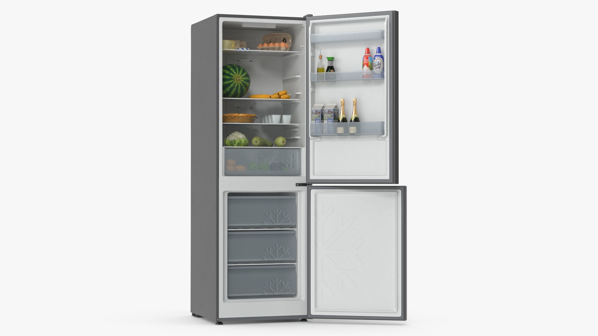 Open Fridge Full of Products is a 3d model of household appliance used for storing and preserving food and beverages