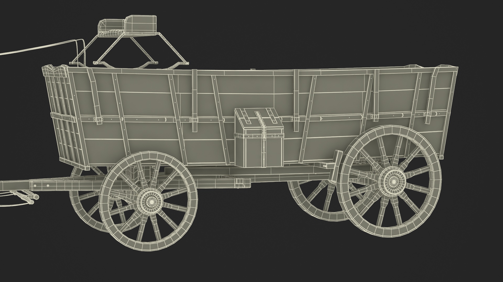 Open Wagon with Horses fur is a three-dimensional model of an American western equine four-wheeled close carriage with horse animals.