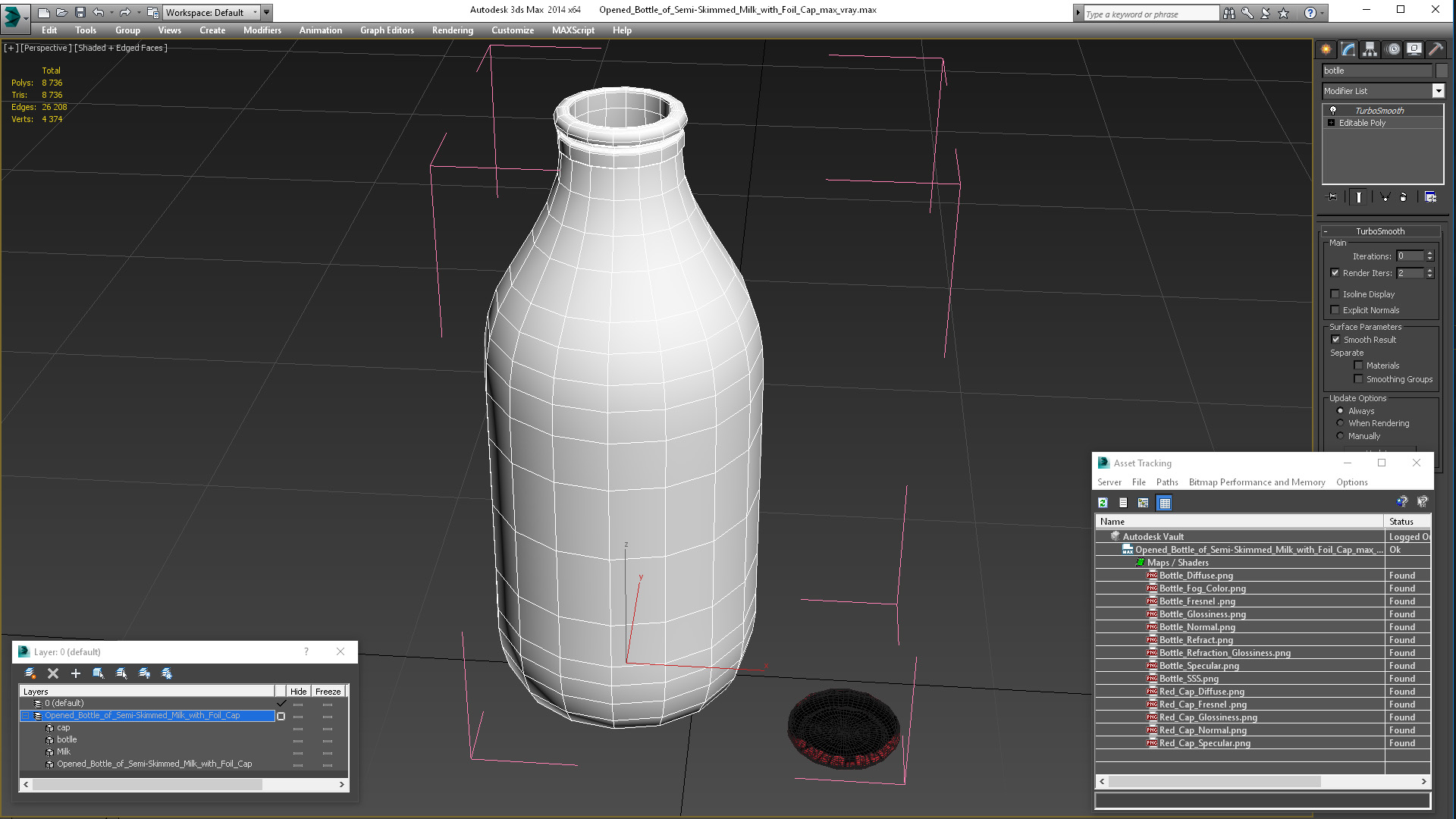 Opened Bottle of Semi-Skimmed Milk with Foil Cap is a high quality, photo real 3d model that will enhance detail and realism to any of your rendering projects. The model has a fully textured, detailed design that allows for close-up renders, and was originally modeled in 3ds Max 2020 and rendered with V-Ray. Renders have no postprocessing!