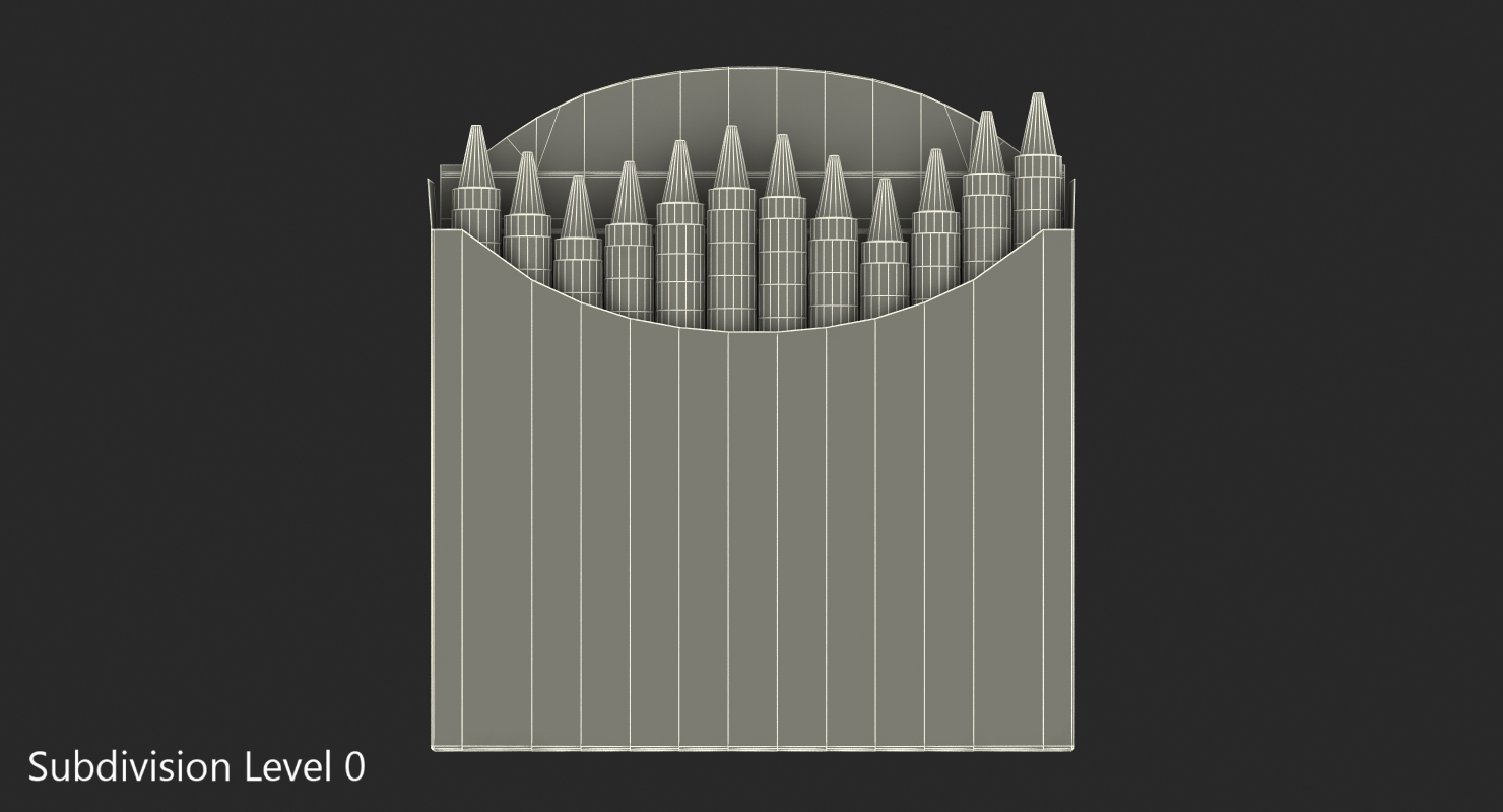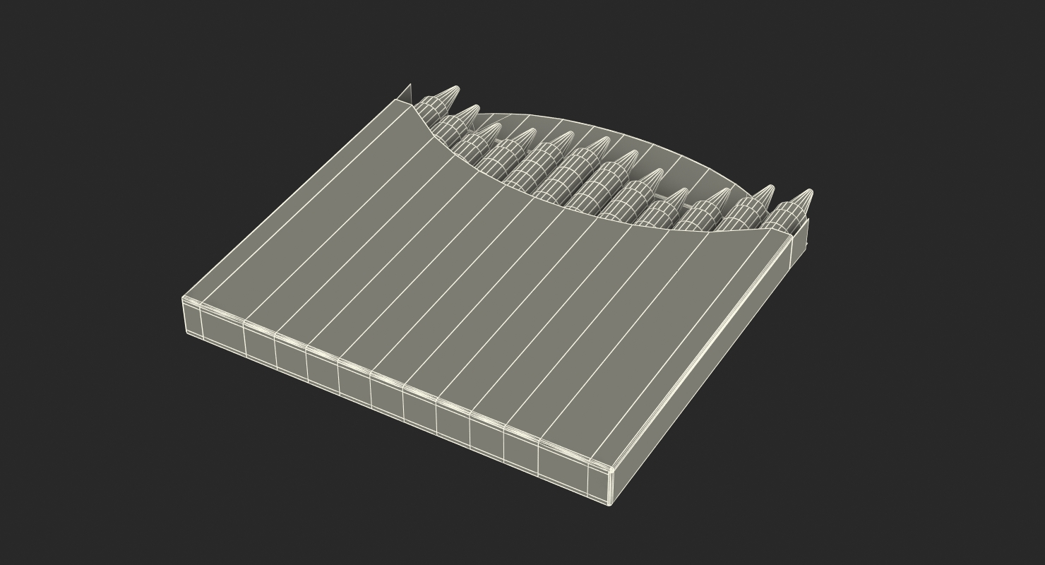 Opened Crayons Box 12 Count is a high quality, photo real 3d model that will enhance detail and realism to any of your rendering projects. The model has a fully textured, detailed design that allows for close-up renders, and was originally modeled in 3ds Max 2020 and rendered with V-Ray. Renders have no postprocessing!