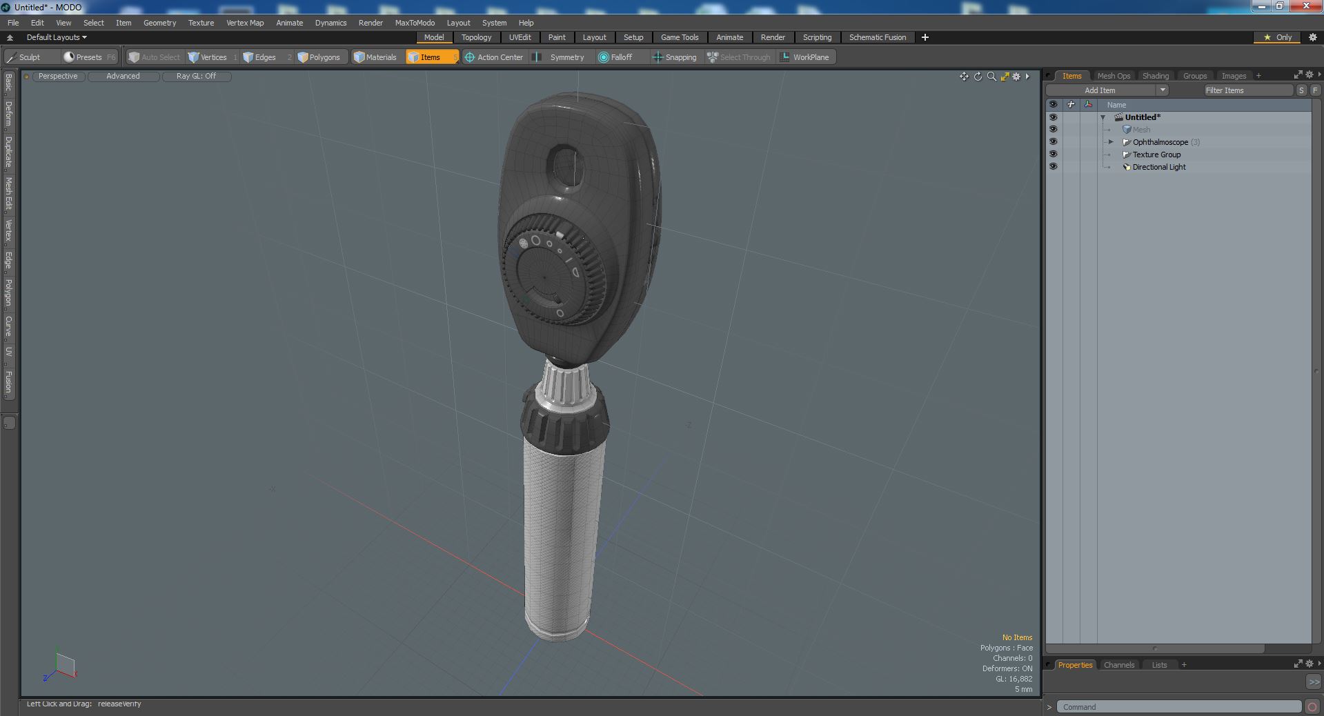 Ophthalmoscope is a 3d model of handheld device used to examine the eye's interior structure, including the retina.