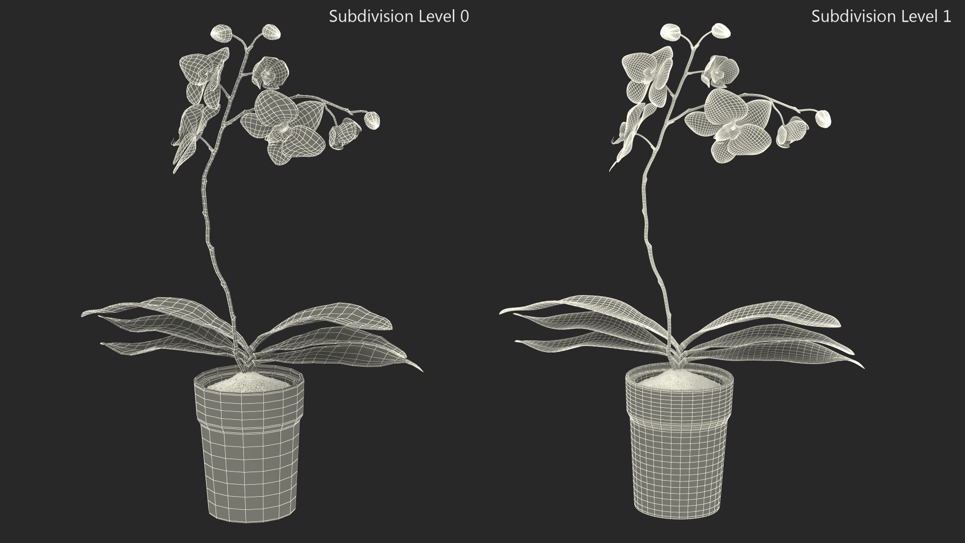 Orchid Pot is a three-dimensional model of beautiful, popular and well known horticultural orchid plant which is s houseplant type ornamental flower.