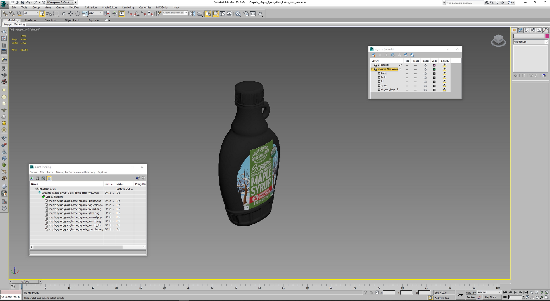 Organic Maple Syrup Glass Bottle is a high quality, photo real 3d model that will enhance detail and realism to any of your rendering projects. The model has a fully textured, detailed design that allows for close-up renders, and was originally modeled in 3ds Max 2020 and rendered with V-Ray. Renders have no postprocessing!