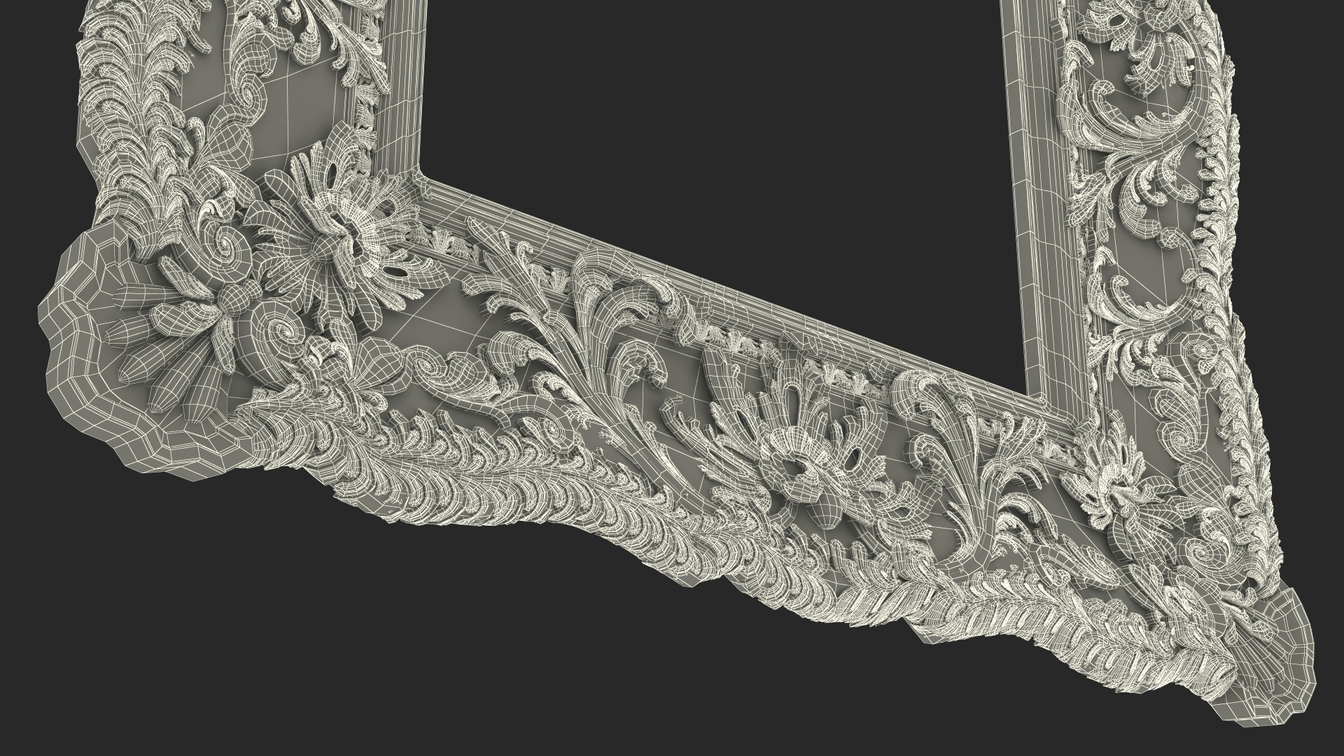 Ornate Baroque Picture Frame is a 3d model of decorative and elaborate frame typically characterized by intricate detailing, scrolls, floral motifs, and other decorative elements inspired by the Baroque artistic movement of the 17th and 18th centuries.