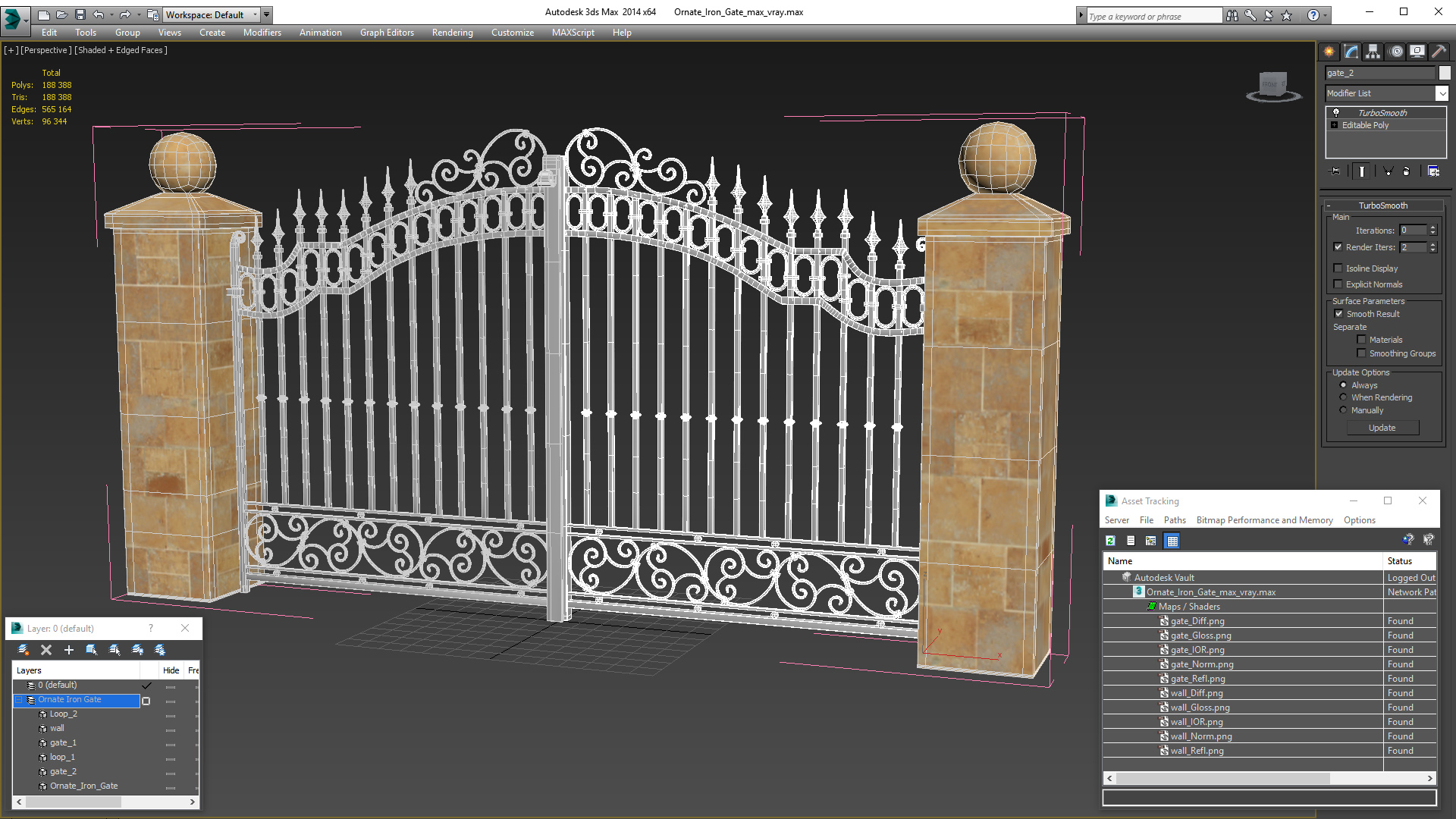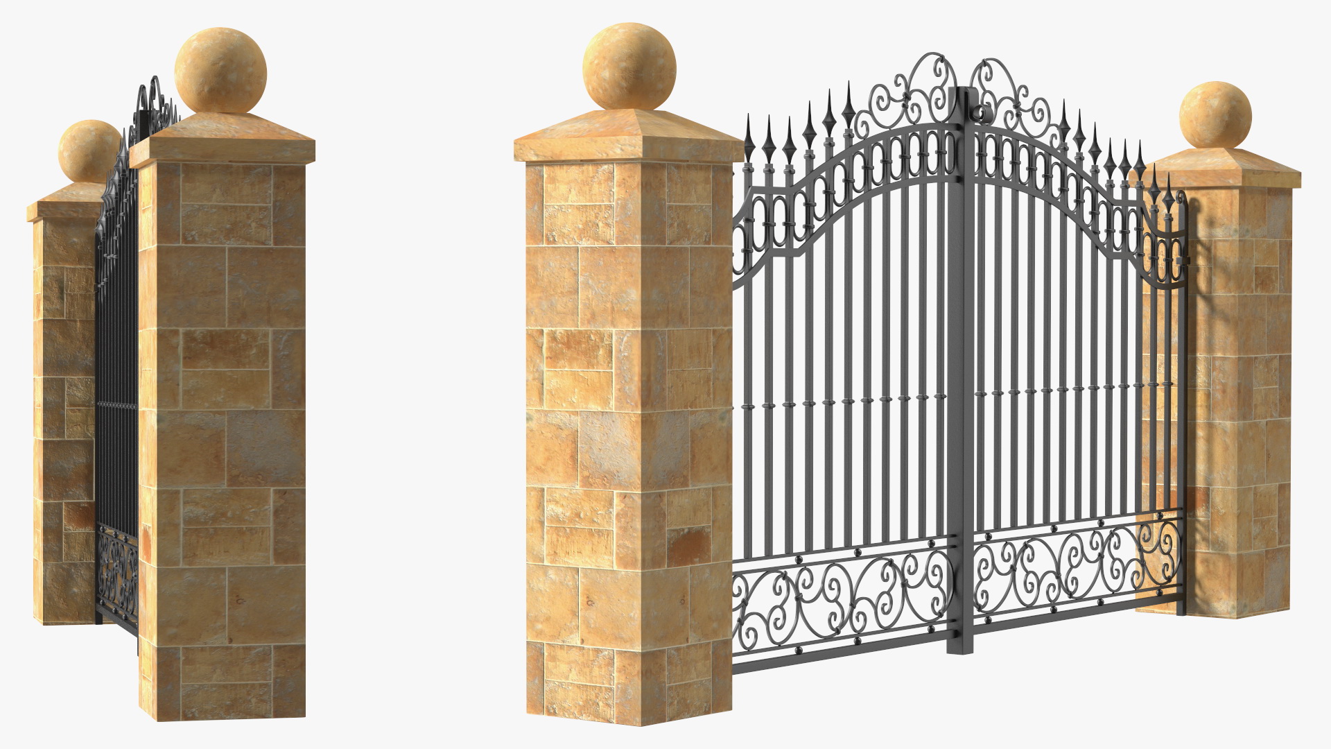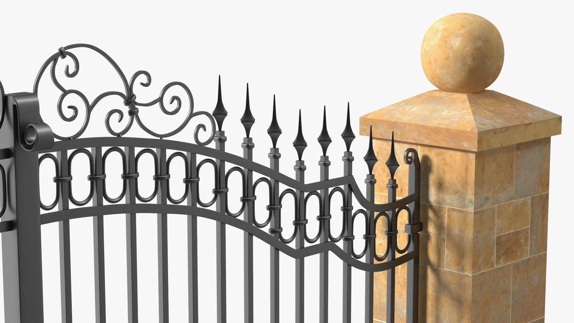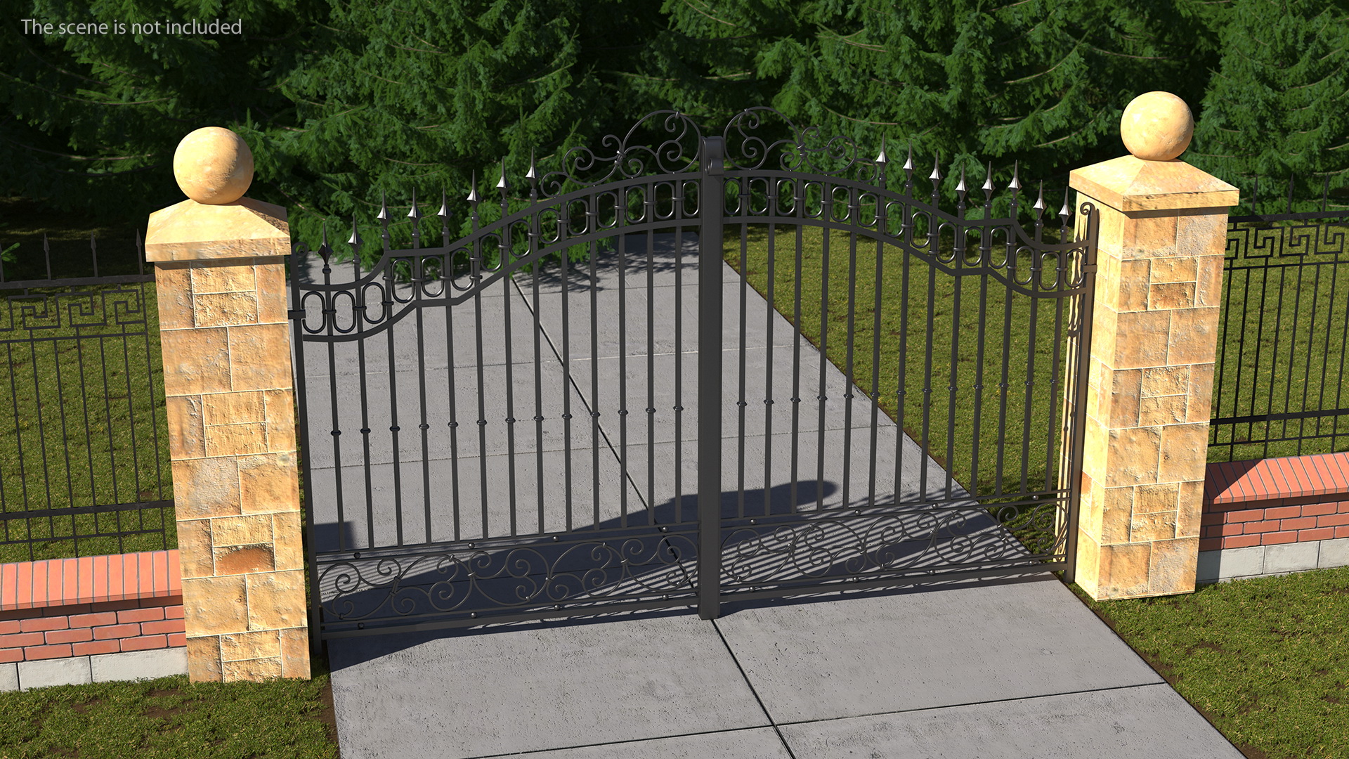 Ornate Iron Gate is a high quality, photo real 3d model that will enhance detail and realism to any of your rendering projects. The model has a fully textured, detailed design that allows for close-up renders, and was originally modeled in 3ds Max 2020 and rendered with V-Ray. Renders have no postprocessing!