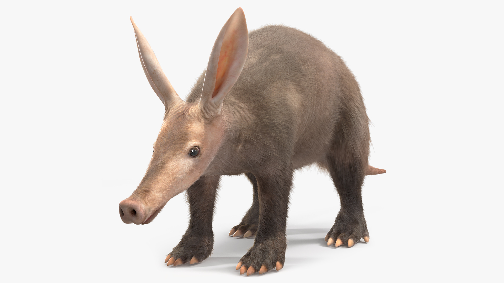 Orycteropus Afer Basic Pose Fur is a three-dimensional model of aardvark (anteater, Orycteropus afer, African ant bear, or Cape anteater), which is an medium-sized, African, burrowing, nocturnal, mammal cute animal with a funny long snout, similar to that of a pig, which is used to sniff out food.