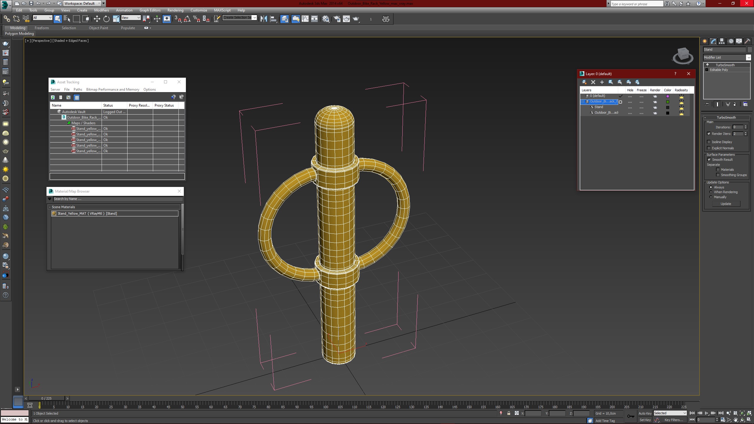 Outdoor Bike Rack Yellow is a high quality, photo real 3d model that will enhance detail and realism to any of your rendering projects. The model has a fully textured, detailed design that allows for close-up renders, and was originally modeled in 3ds Max 2020 and rendered with V-Ray. Renders have no postprocessing!