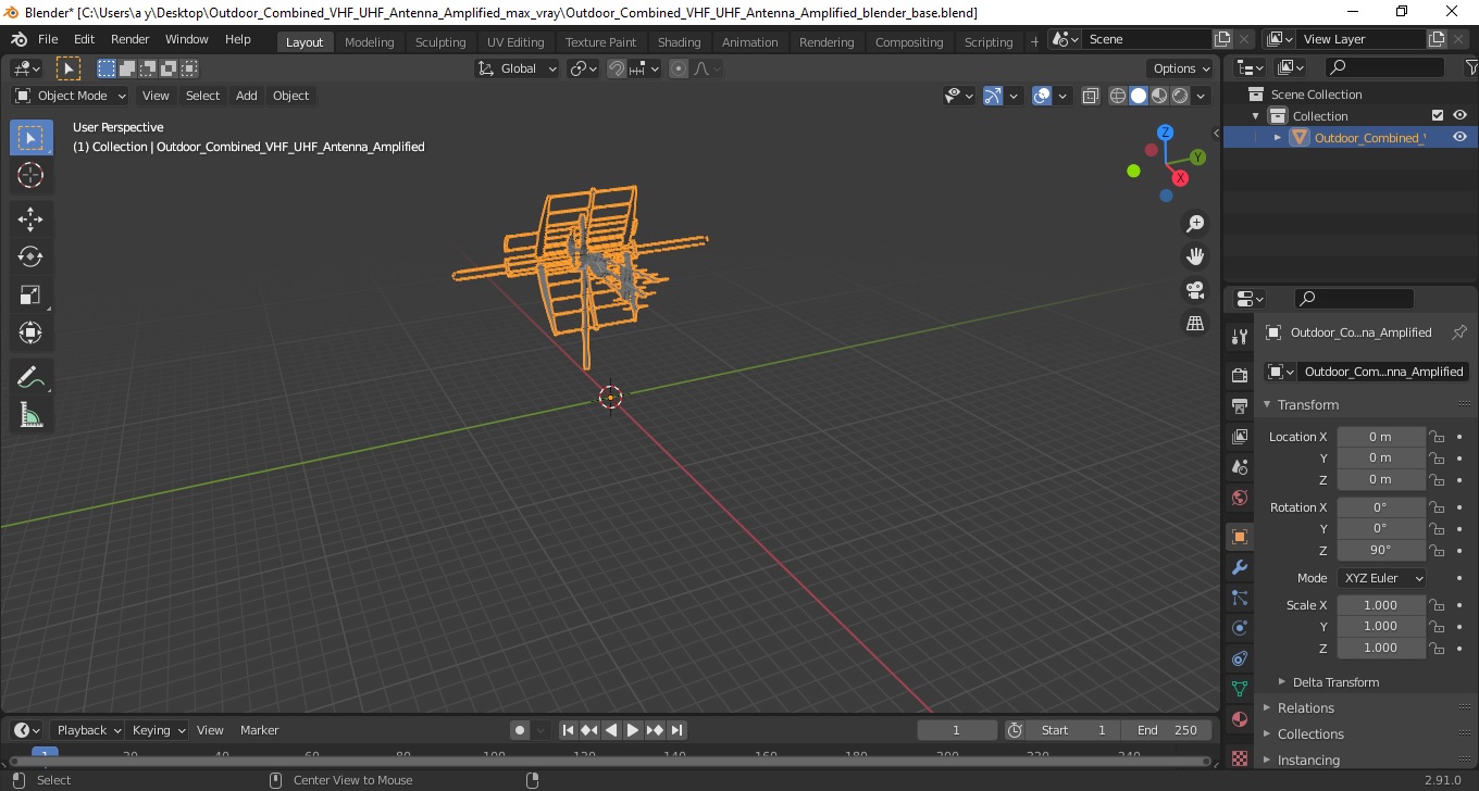 Outdoor Combined VHF UHF Antenna Amplified is a high quality, photo real 3d model that will enhance detail and realism to any of your rendering projects. The model has a fully textured, detailed design that allows for close-up renders, and was originally modeled in 3ds Max 2020 and rendered with V-Ray. Renders have no postprocessing!