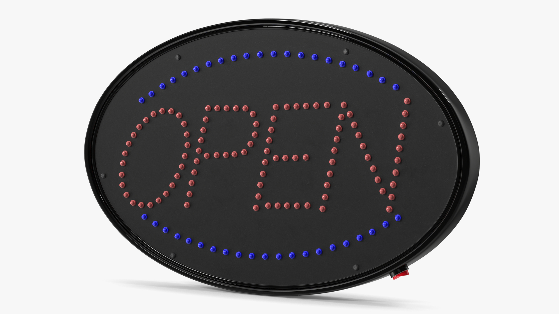 Oval LED Light Business Sign Open OFF is a 3D model of well known and widespread glaring LED type displaying signboard (electronic neon like display or electrical sign panel).