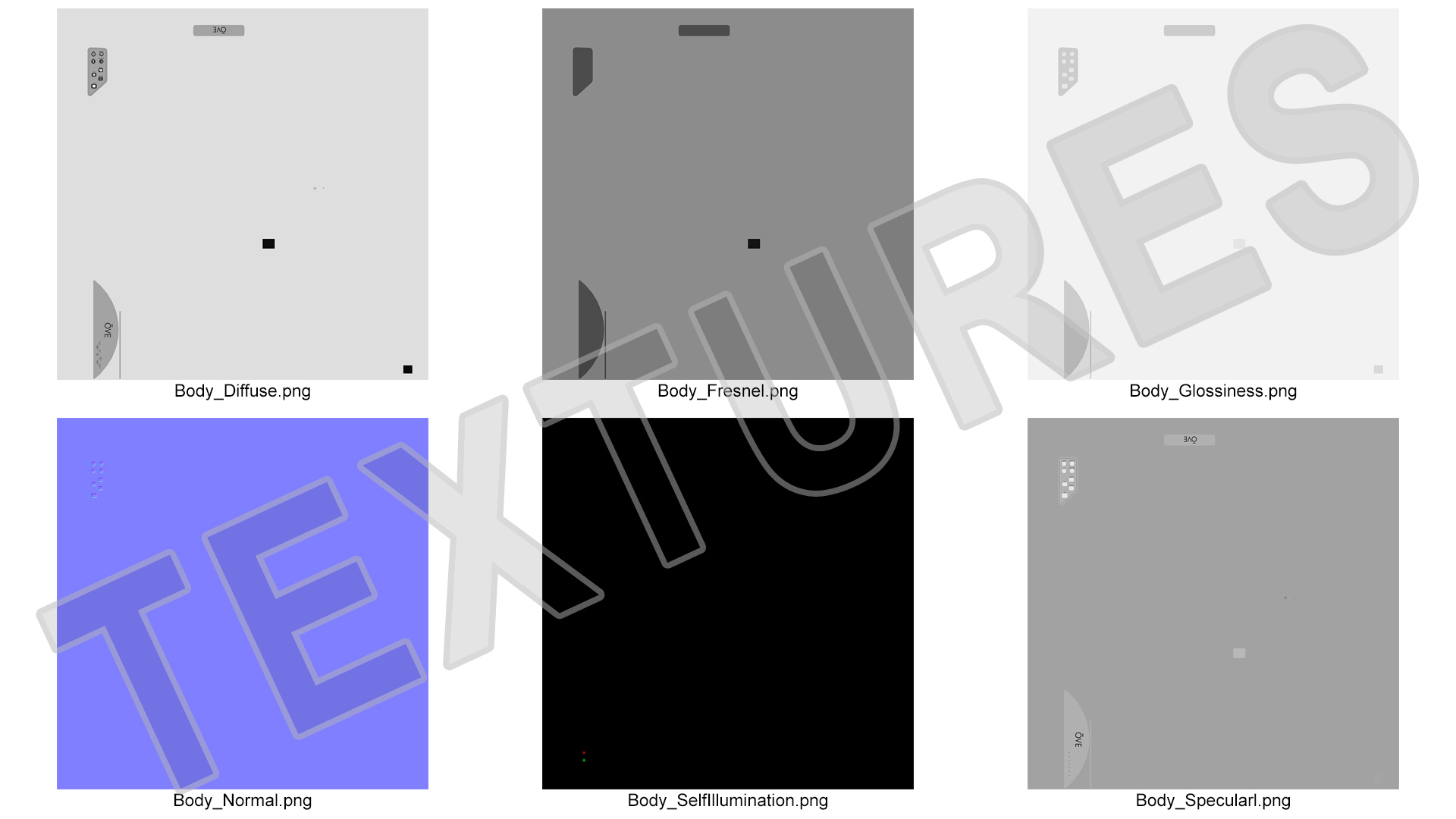 All textures and materials are included and mapped. (All colors can be easily modified.)