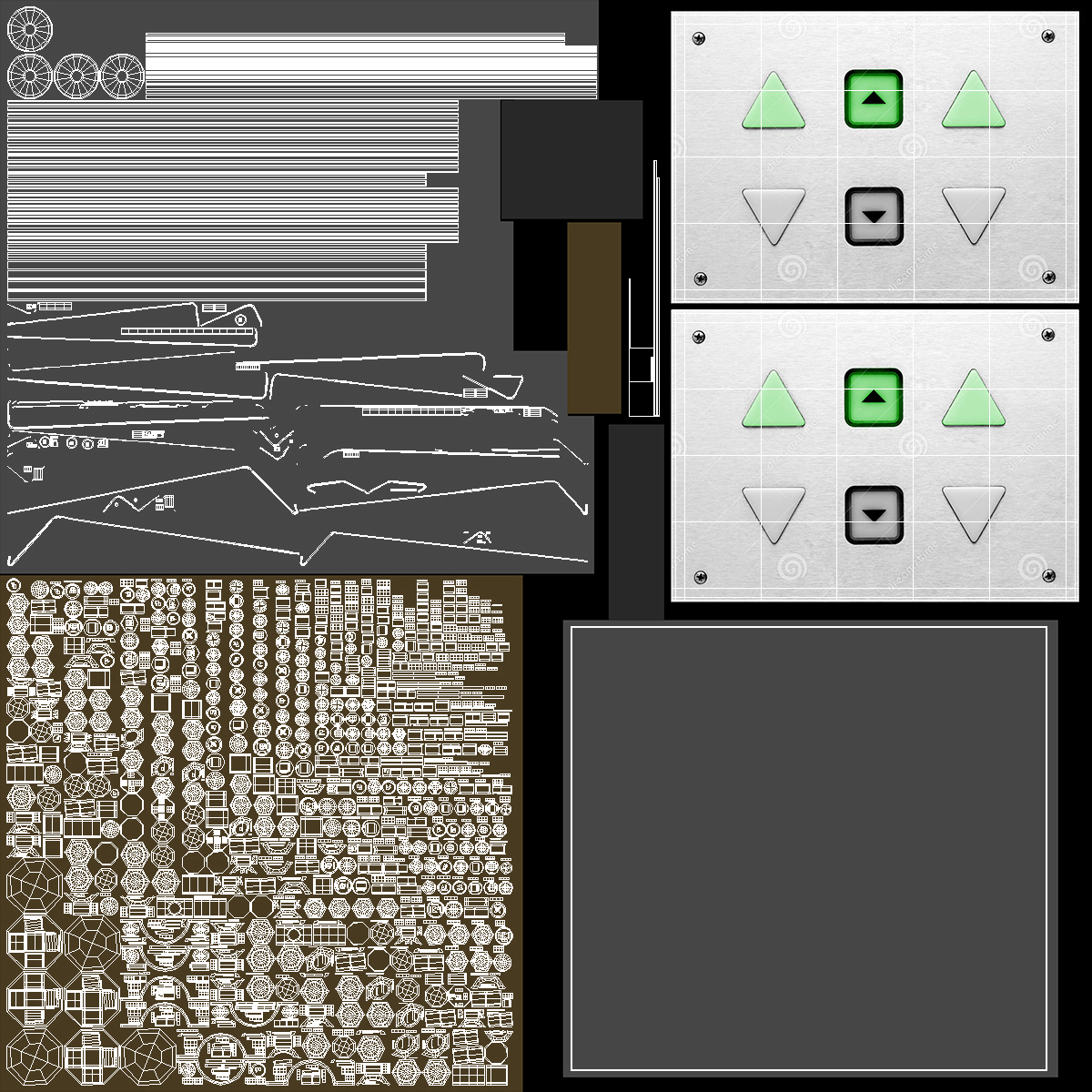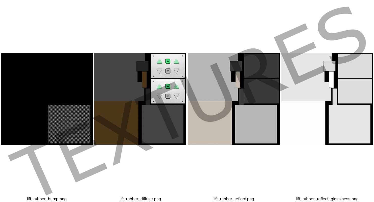 All textures and materials are included and mapped. (All colors can be easily modified.)