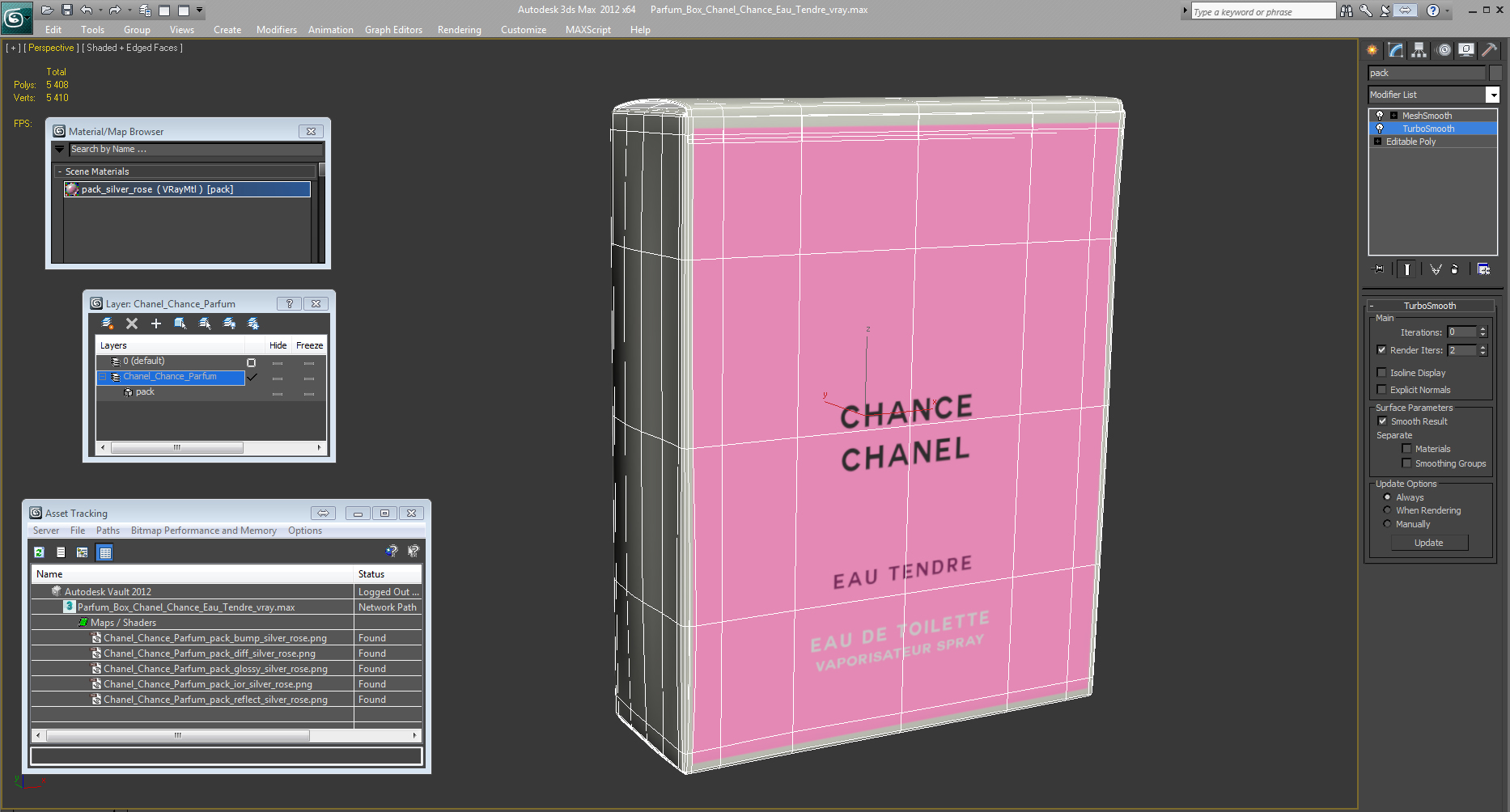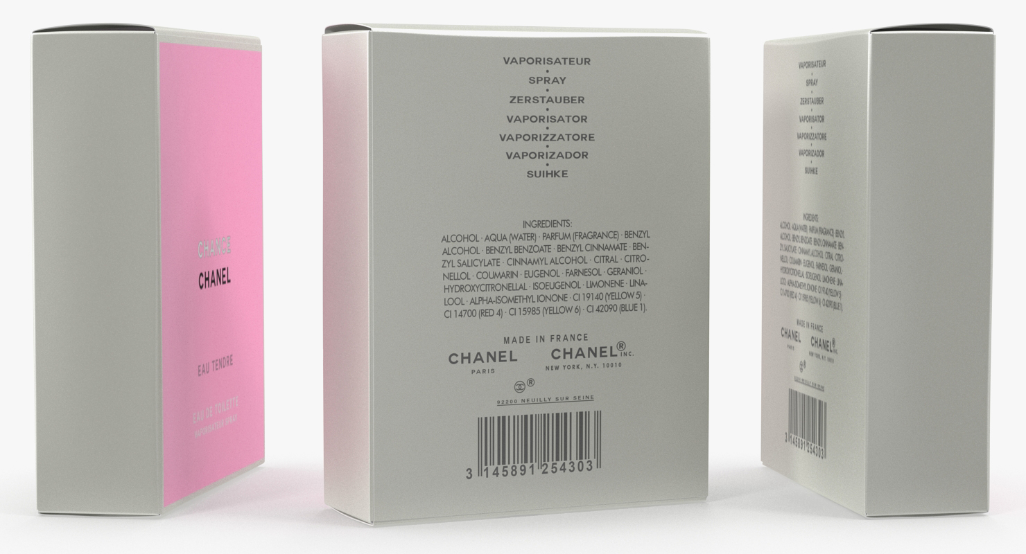 Parfum Box Chanel Chance Eau Tendre is a high quality, photo real 3d model that will enhance detail and realism to any of your rendering projects. The model has a fully textured, detailed design that allows for close-up renders, and was originally modeled in 3ds Max 2020 and rendered with V-Ray. Renders have no postprocessing!