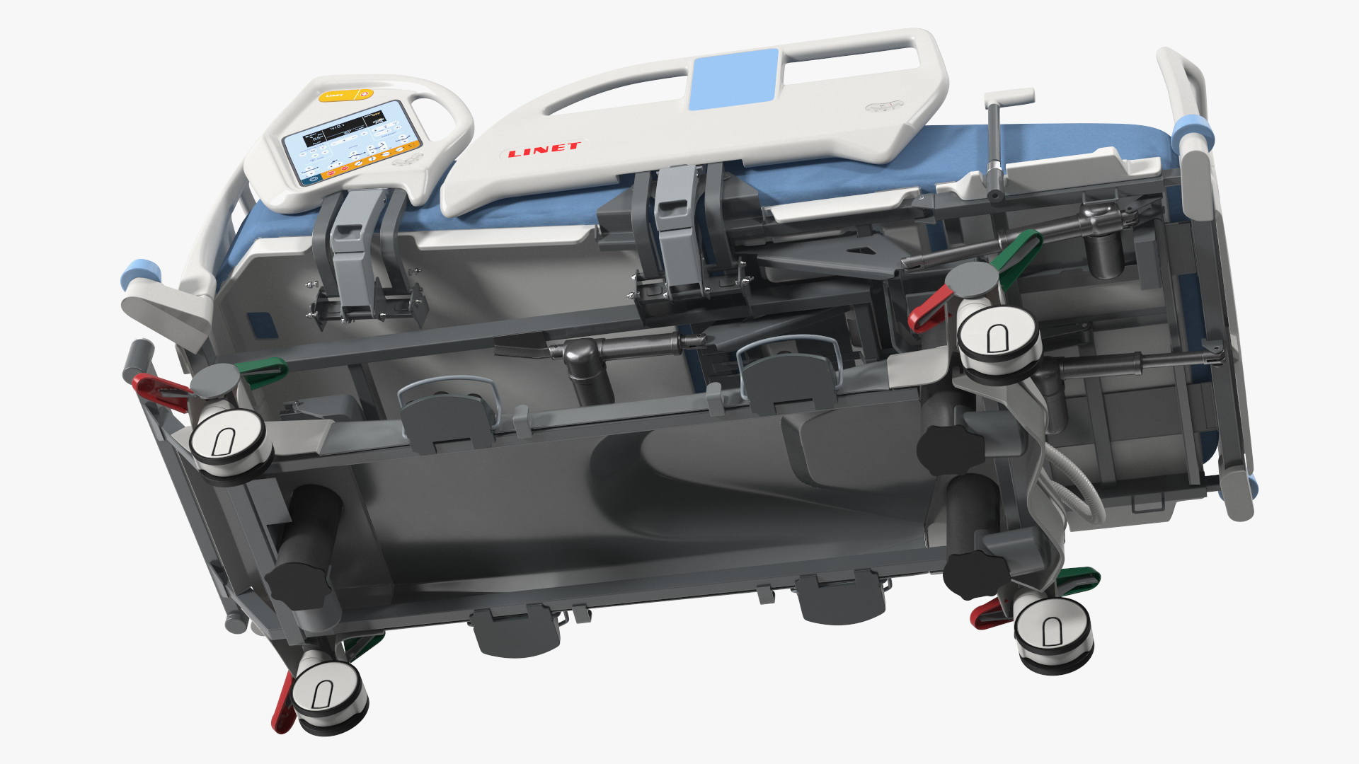 Patient on LINET Intensive Care Bed is a three-dimensional model of elderly male person with a specialized medical bed designed to provide optimal care and support for patients in critical conditions.