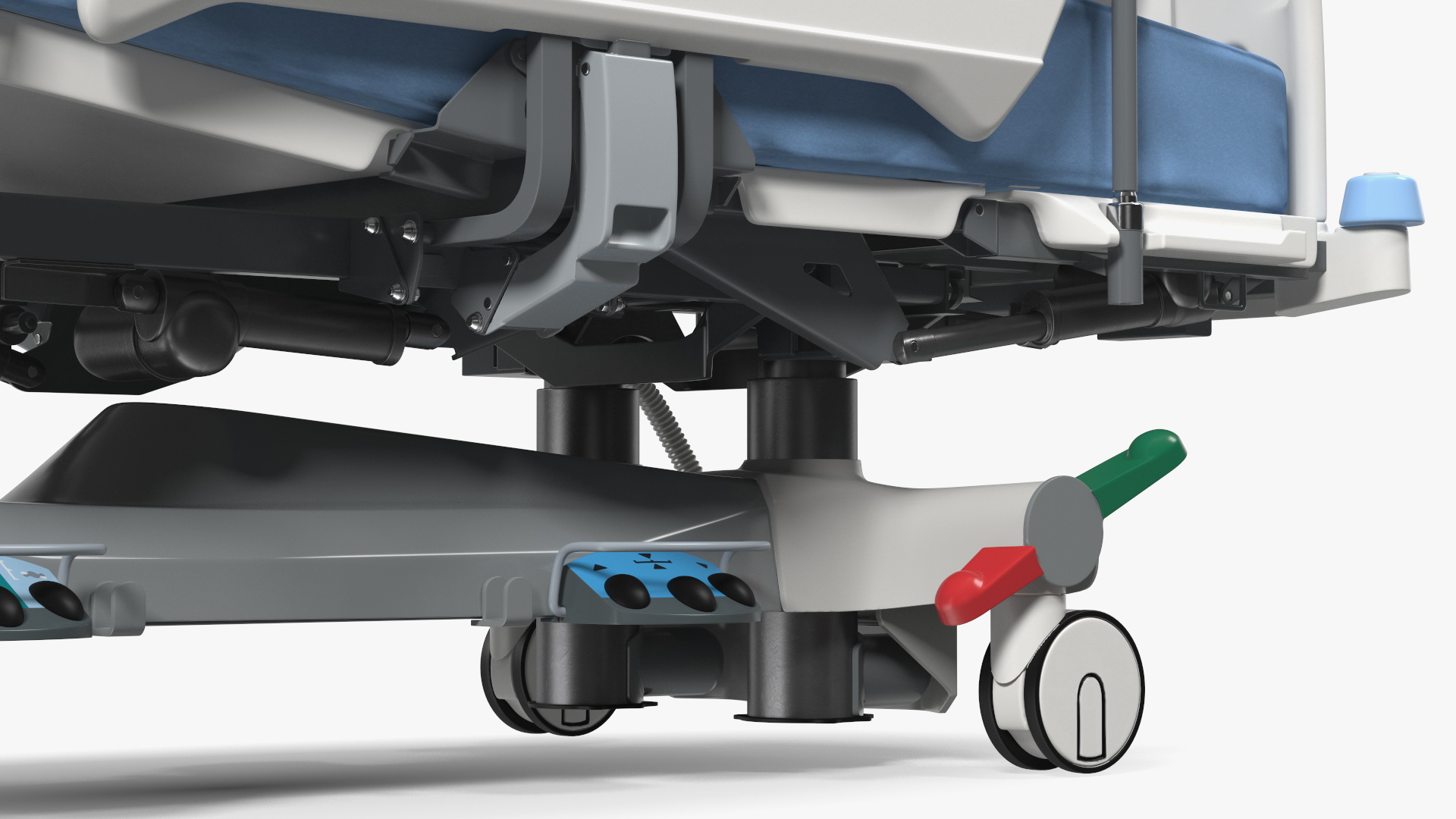 Hospital bed at public hospital which features advanced functionalities such as adjustable height, tilt, and backrest positions to accommodate various medical needs. With its robust construction and ergonomic design, it ensures patient comfort and safety during prolonged stays in intensive care units. Mobile hospital bed (hospital cot) which is a specialized health care bed constructed for hospitalized patients.