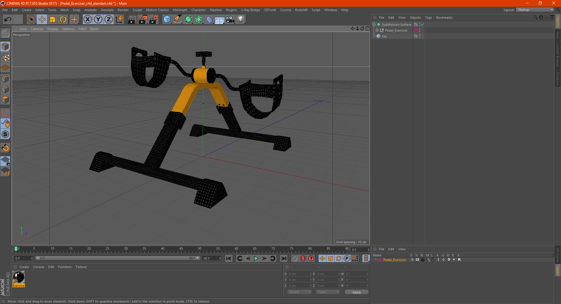 Pedal Exerciser is a high quality, photo real 3d model that will enhance detail and realism to any of your rendering projects. The model has a fully textured, detailed design that allows for close-up renders, and was originally modeled in 3ds Max 2020 and rendered with V-Ray. Renders have no postprocessing!